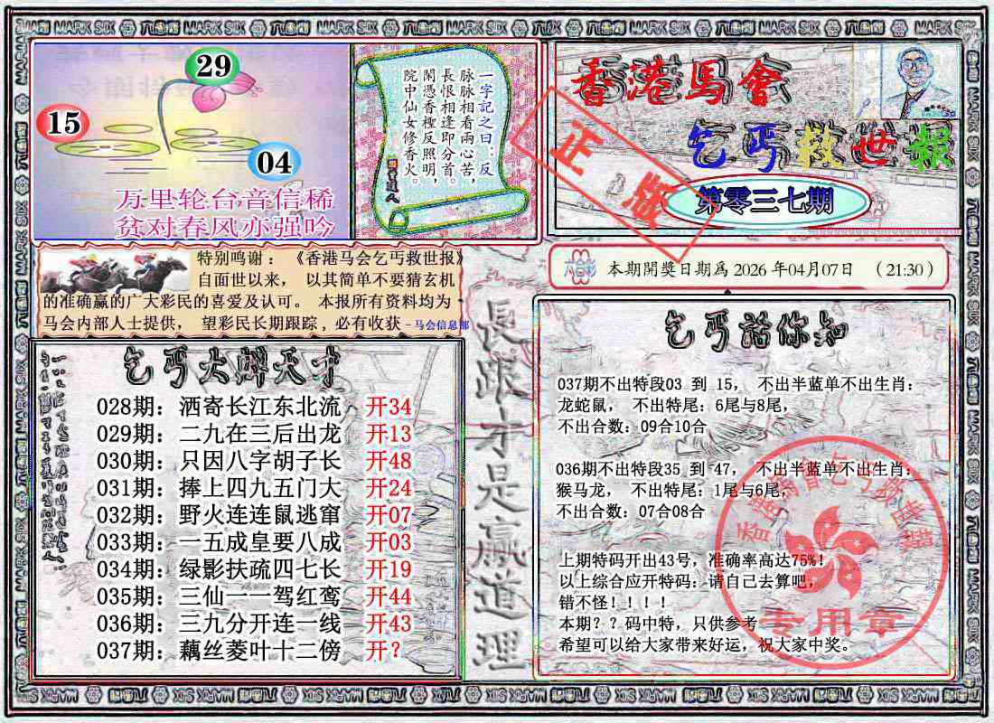 035 马会财经A 036 马会财经B 037 白姐急旋风A 038 白姐急旋风B
