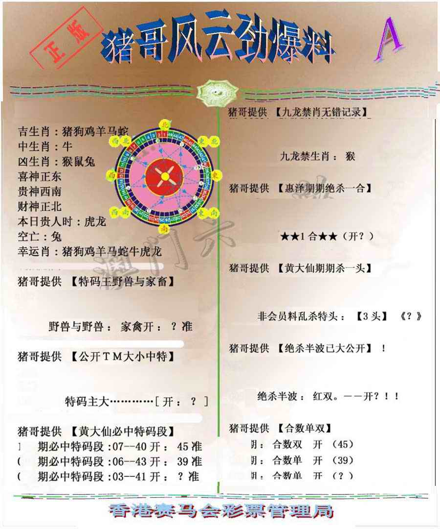 829 旺财三码 830 猫王二肖 831 马会快特A 832 马会快特B