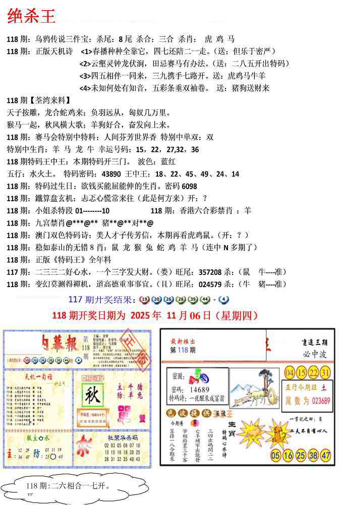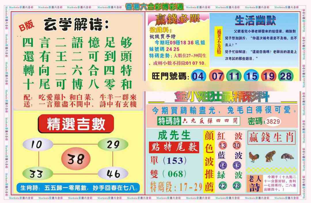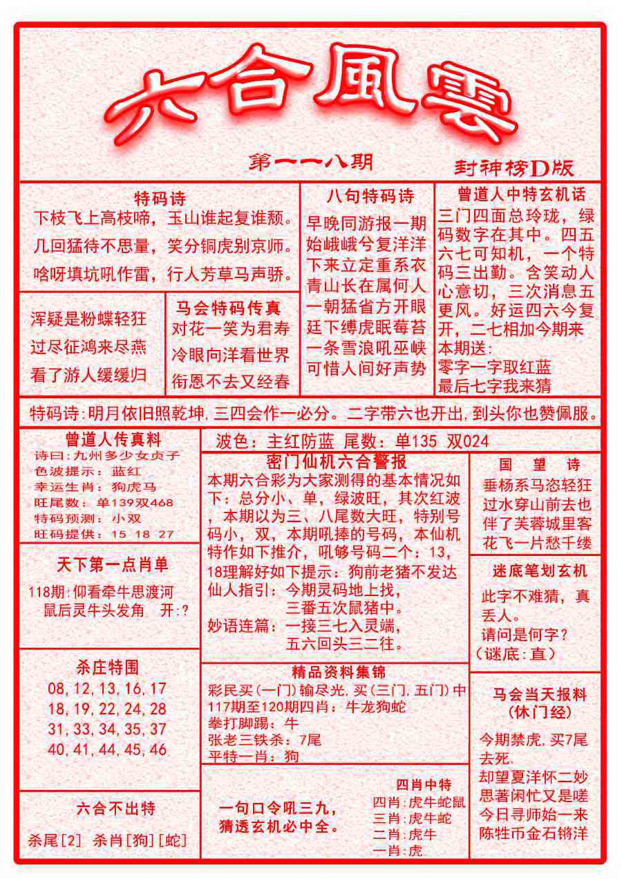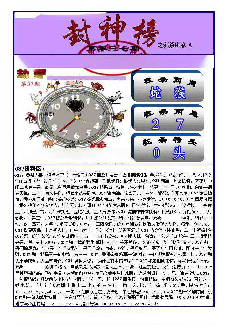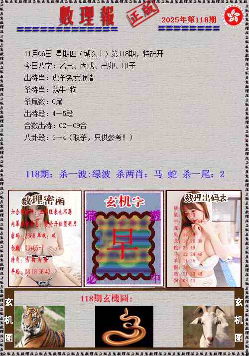 063 六合禅机A 064 六合禅机B 069 特 新 报A 070 特 新 报B