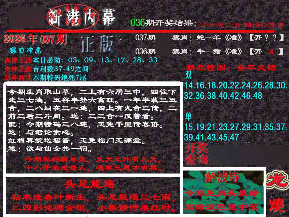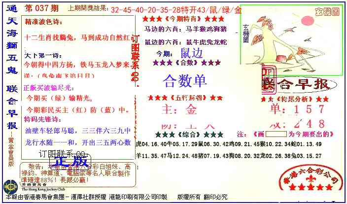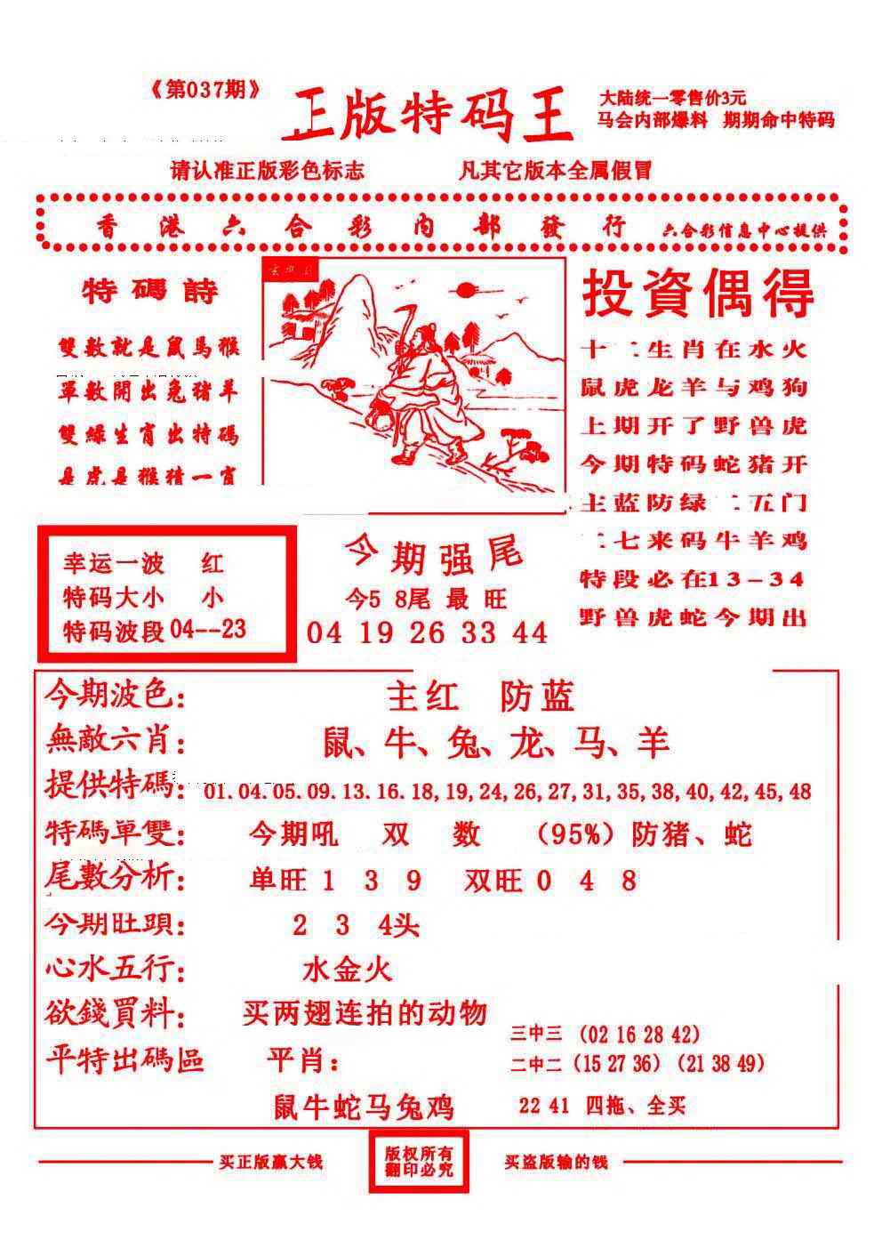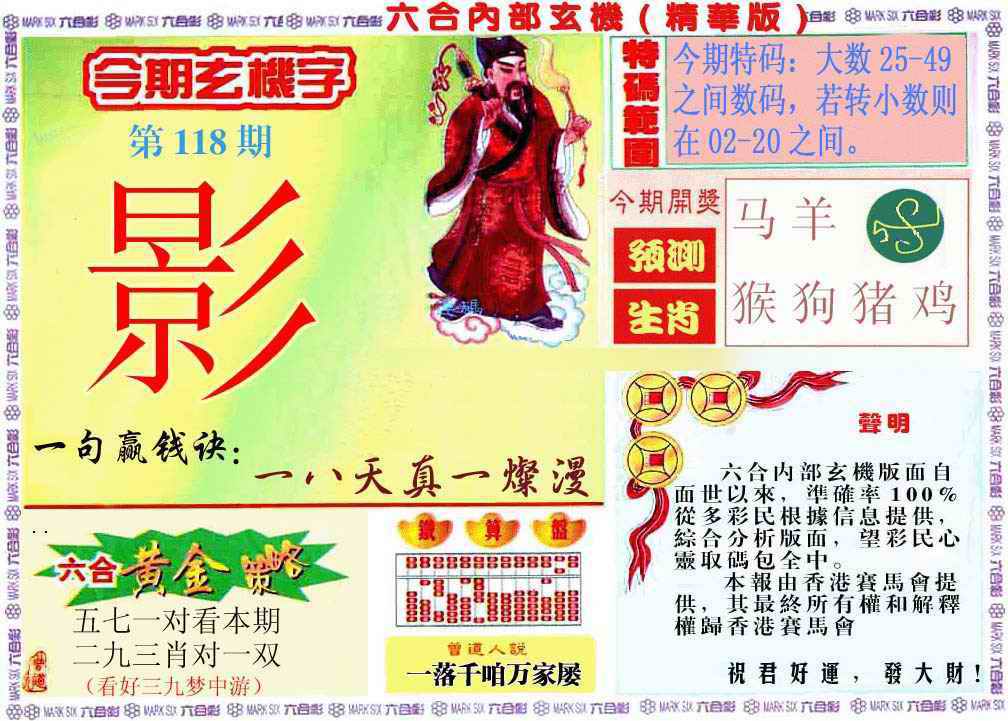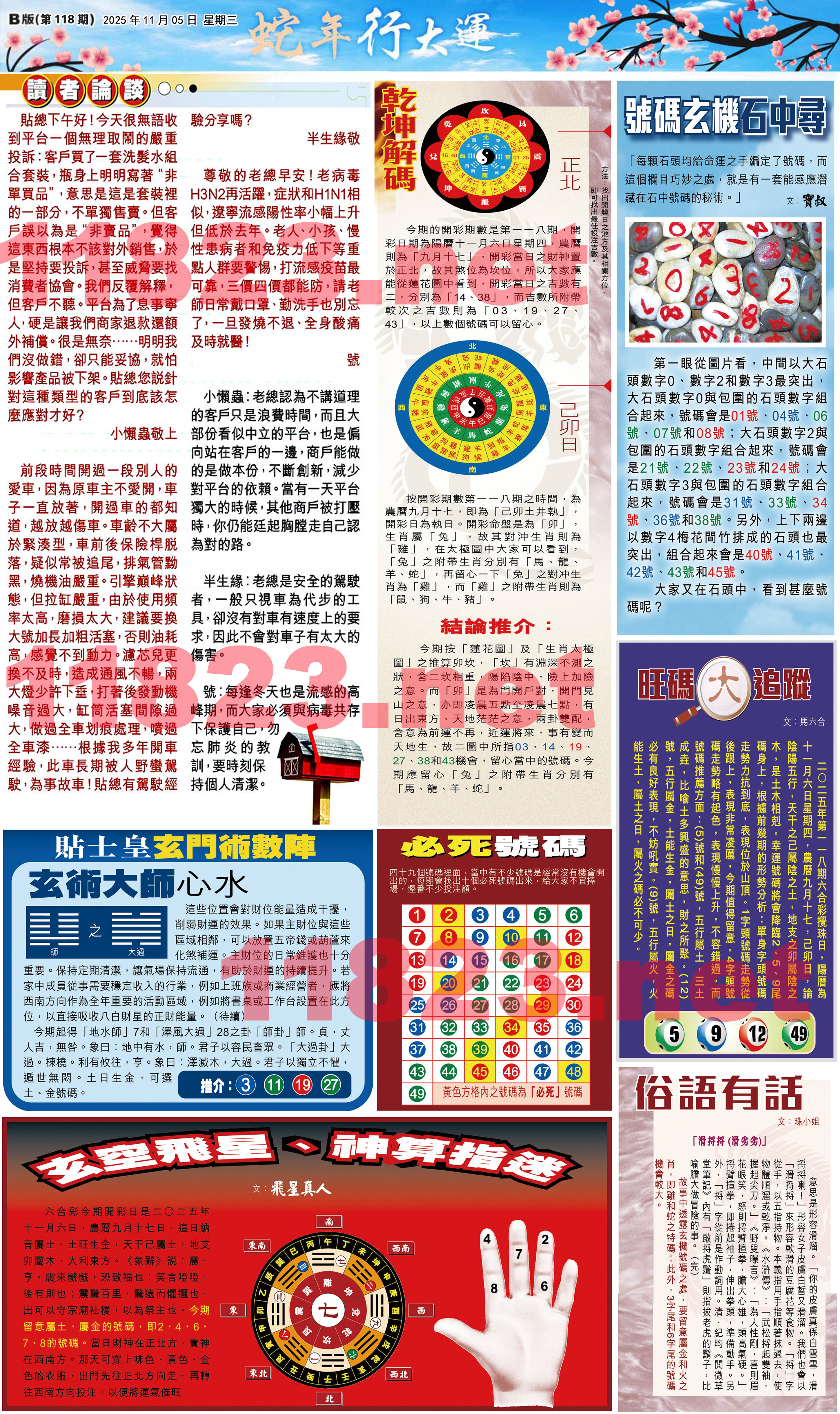 063 六合禅机A 064 六合禅机B 069 特 新 报A 070 特 新 报B