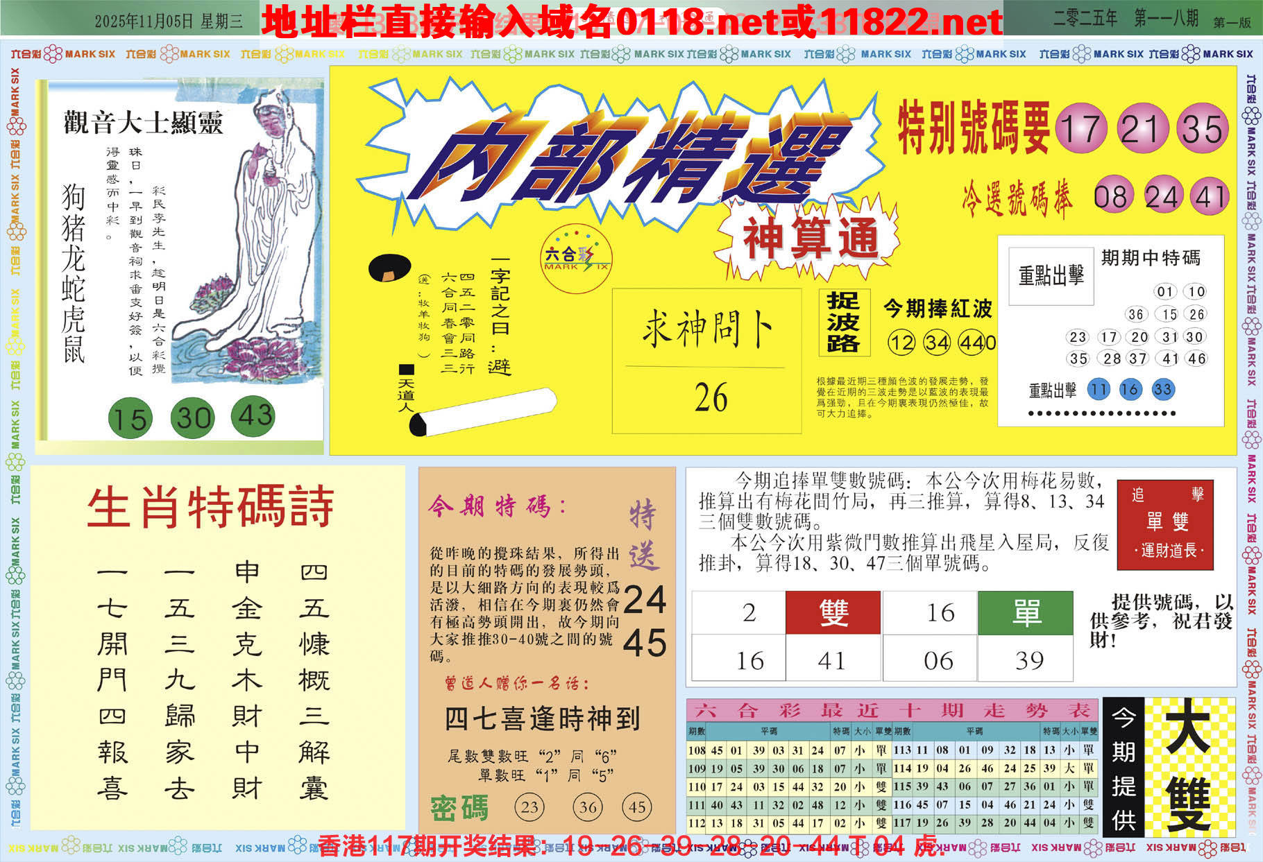 065 香港神算 066 澳门三合图 067 台湾神算通 068 六彩阴阳图