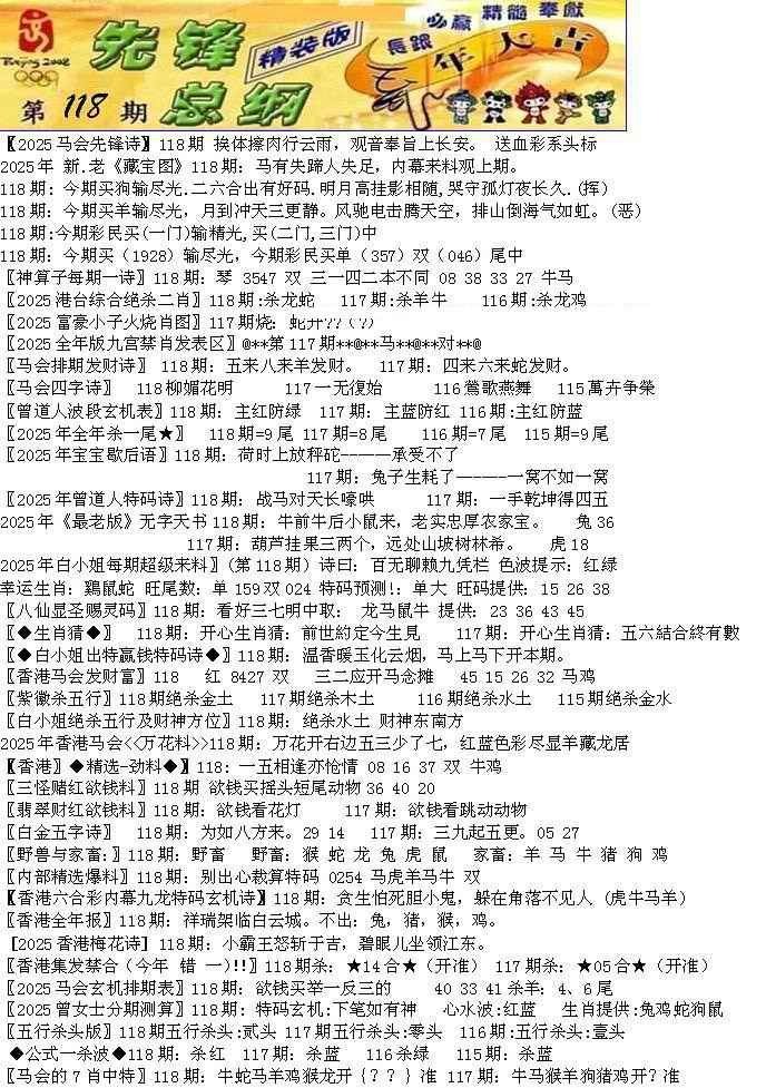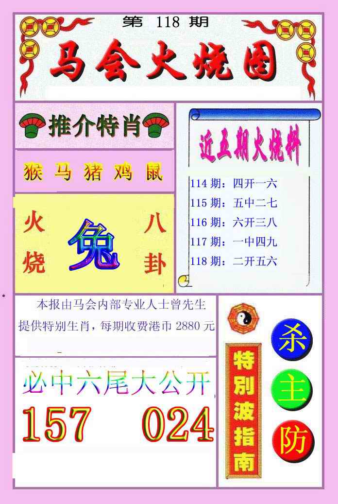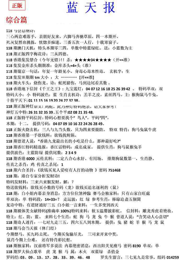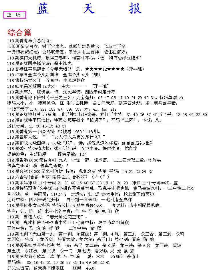 1581 精准传真报 1582 新天线宝宝内幕报 1583 当期狗仔版 1585 白姐泄密