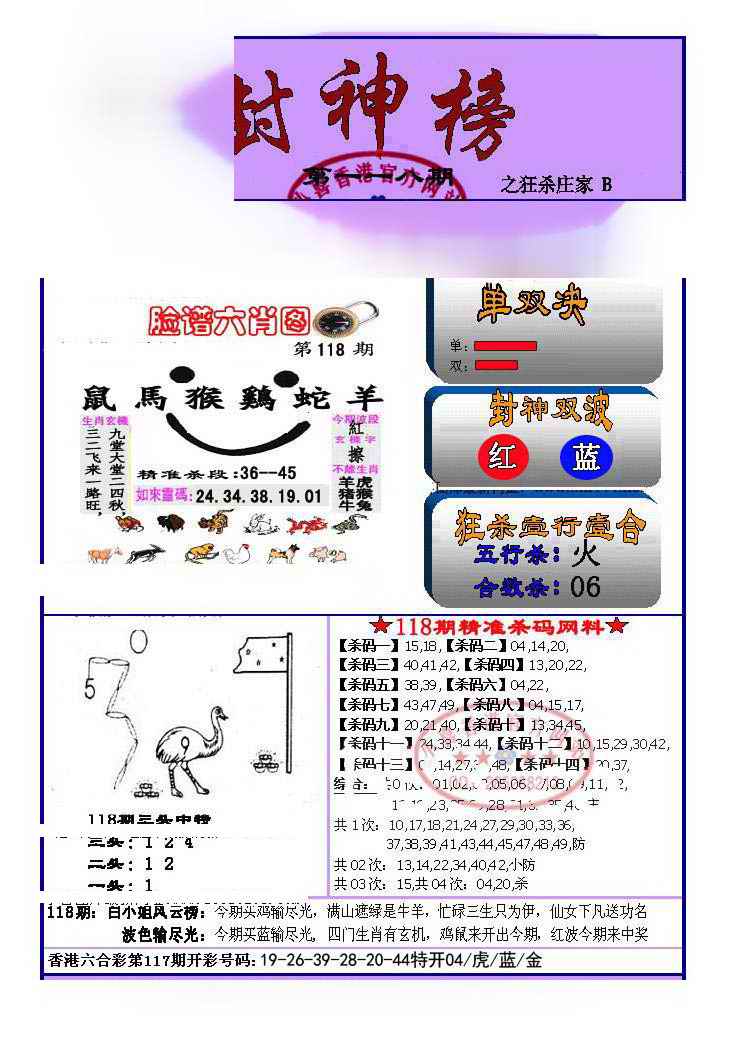163 六合冠军版A 164 六合冠军版B 203 姜子牙神算A 204 姜子牙神算B