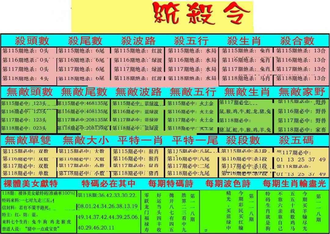 1659 一点红 1660 马经平特图 1661 杀杀杀A 1662 杀杀杀B