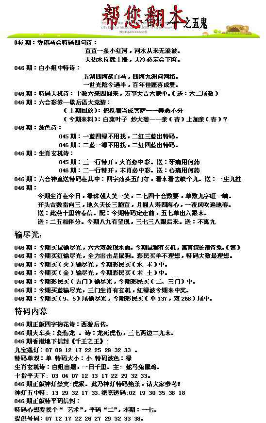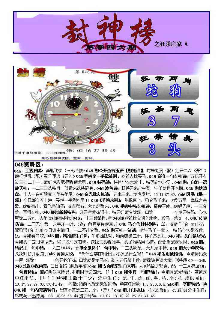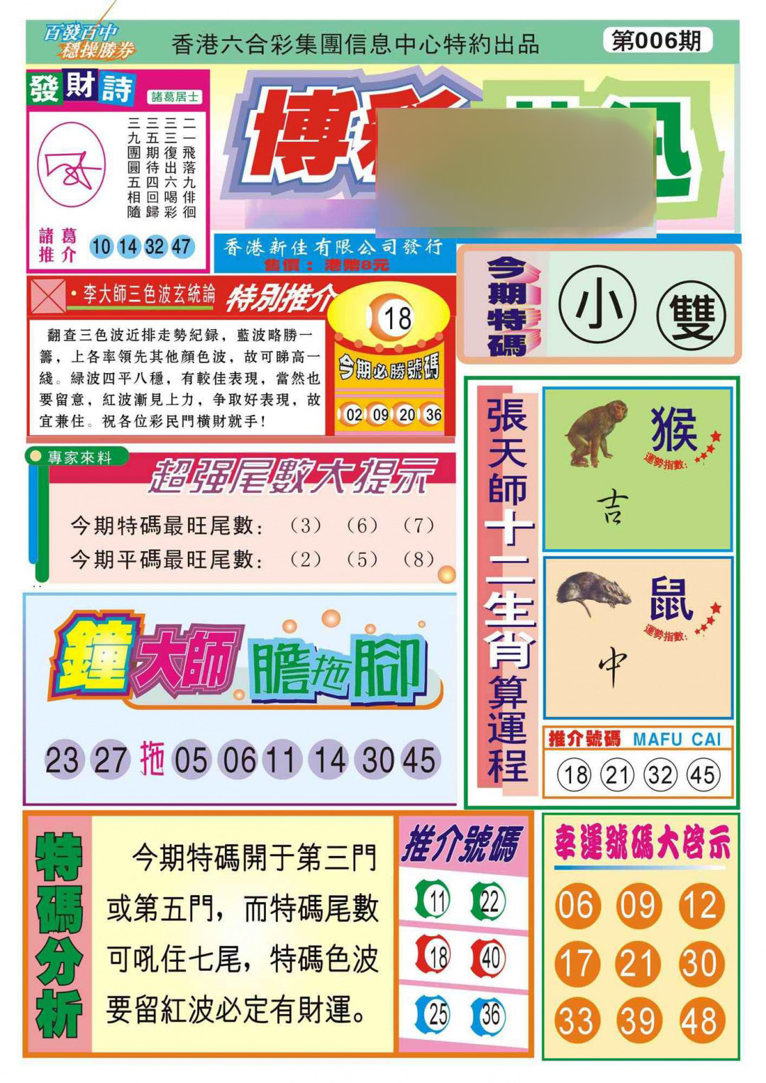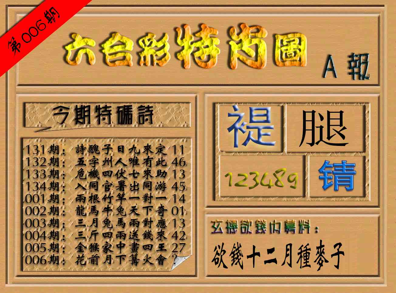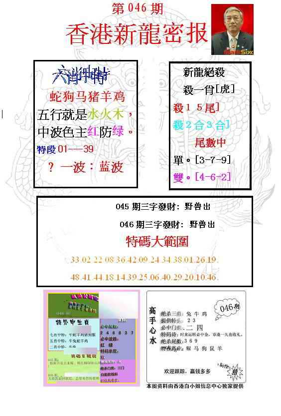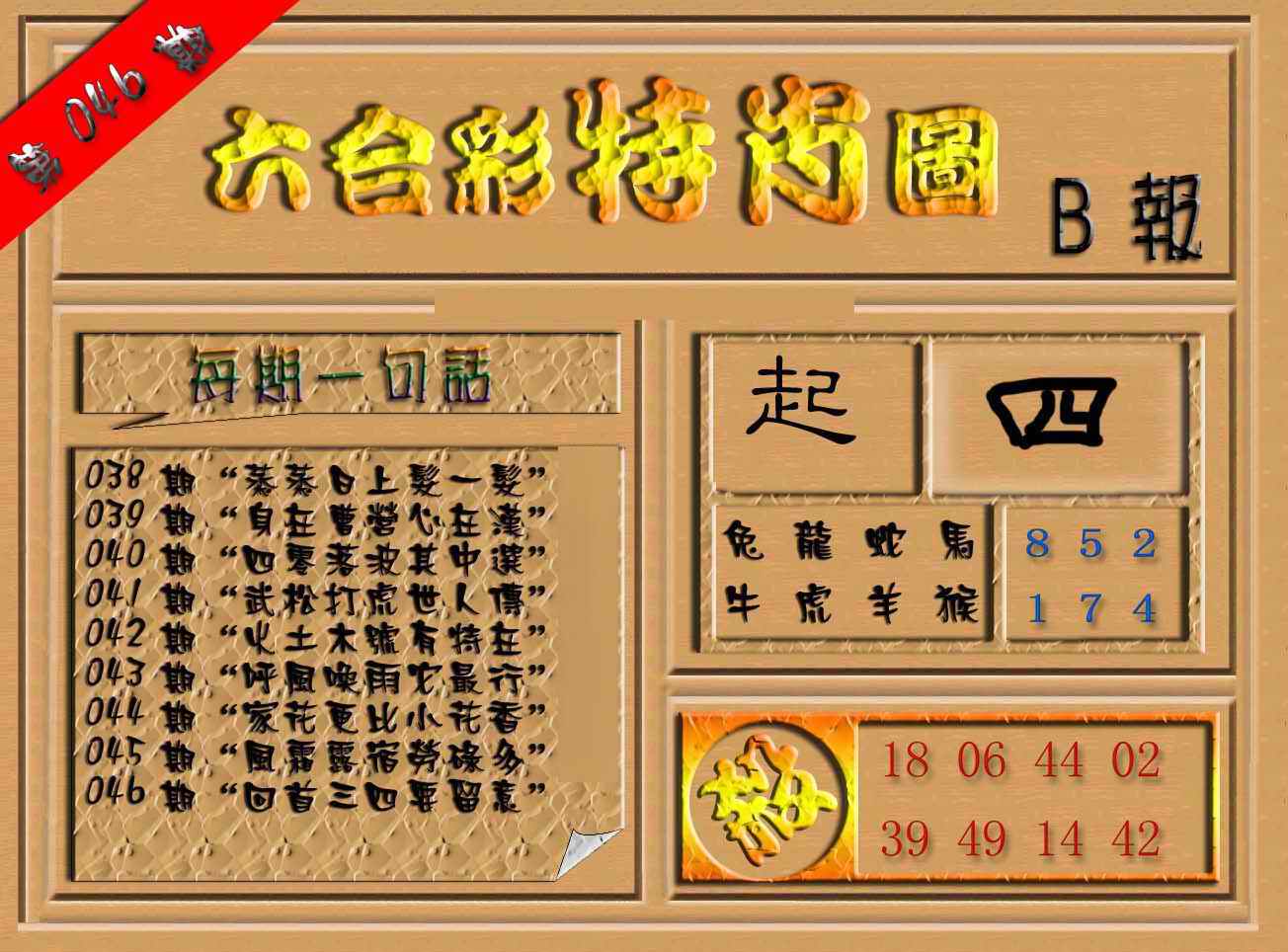 063 六合禅机A 064 六合禅机B 069 特 新 报A 070 特 新 报B