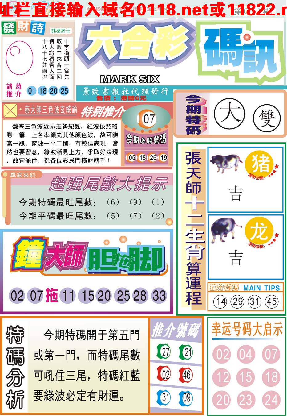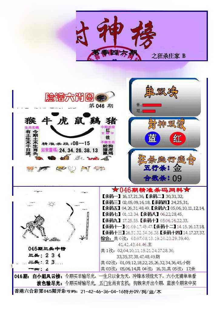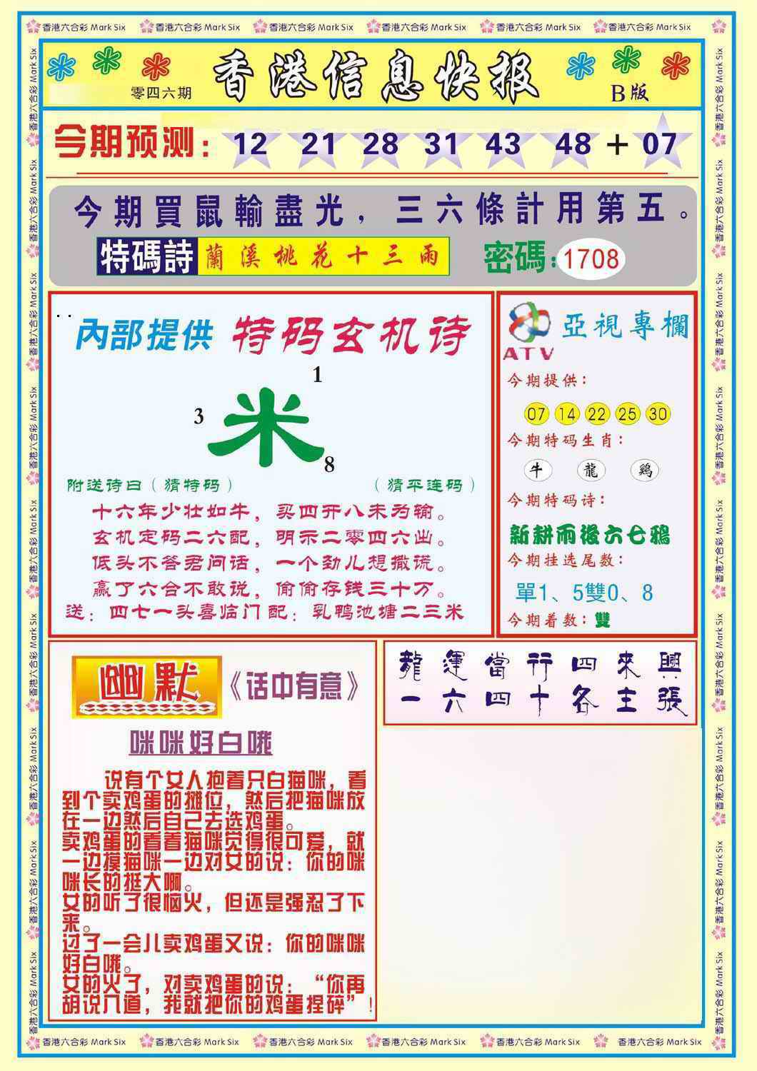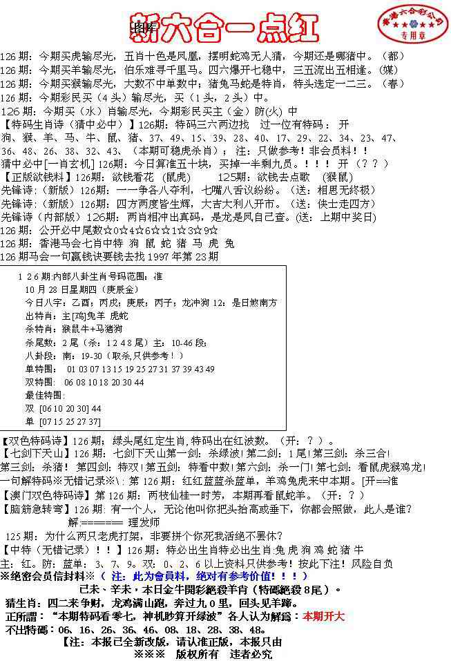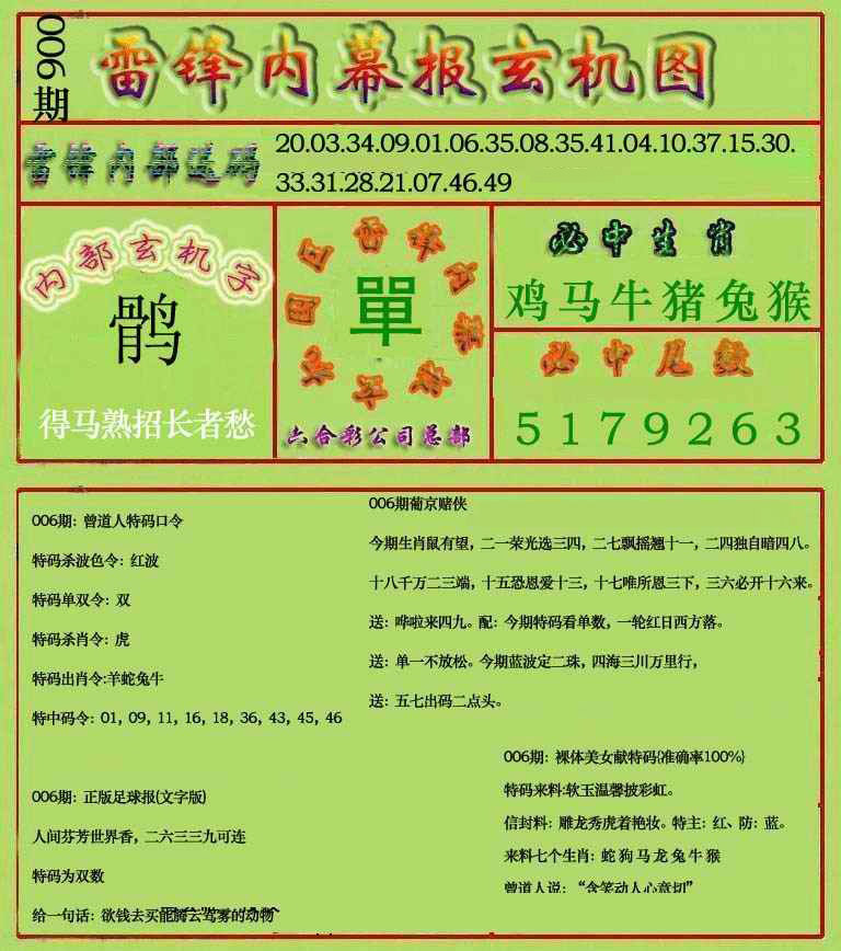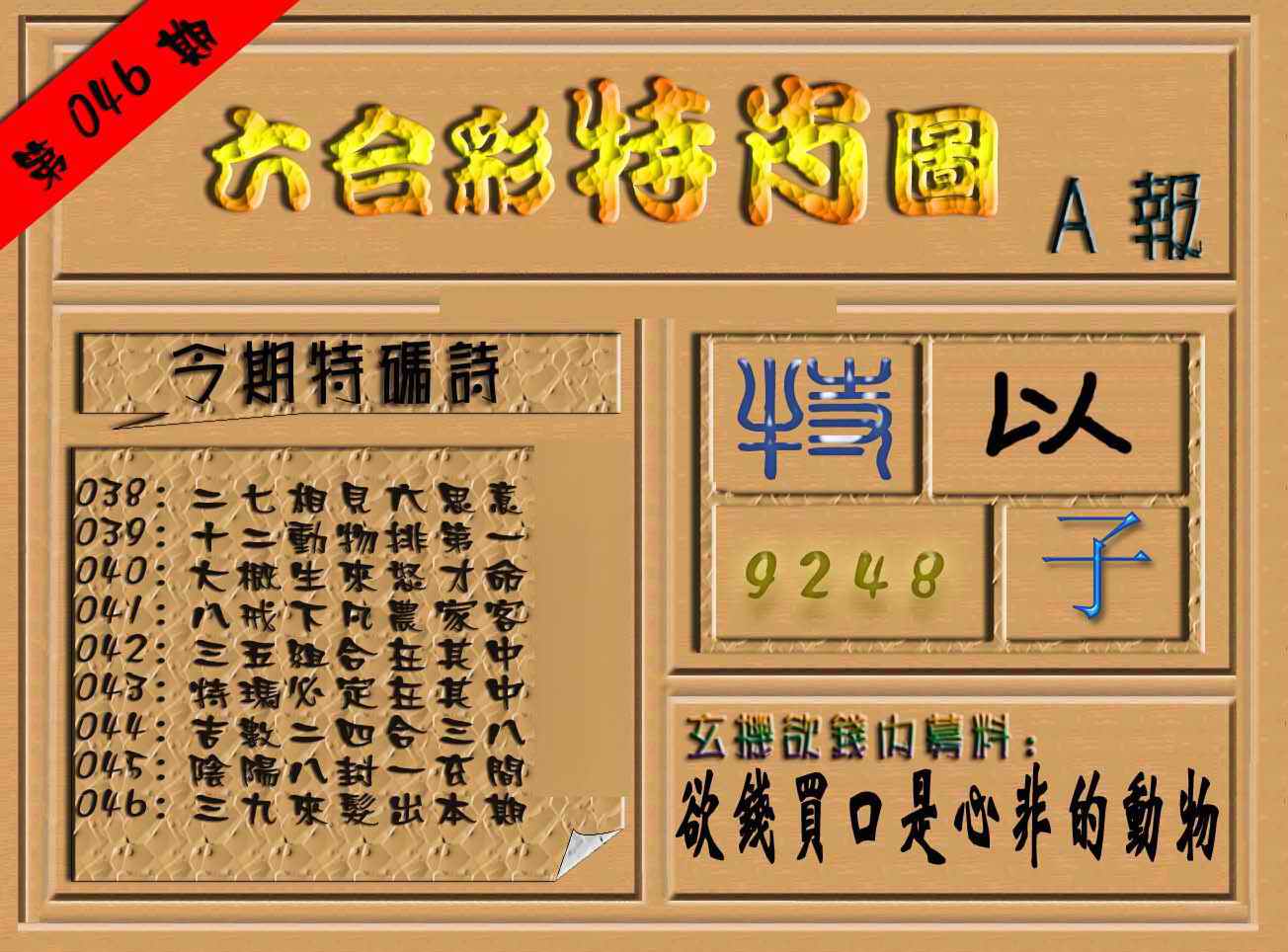 063 六合禅机A 064 六合禅机B 069 特 新 报A 070 特 新 报B