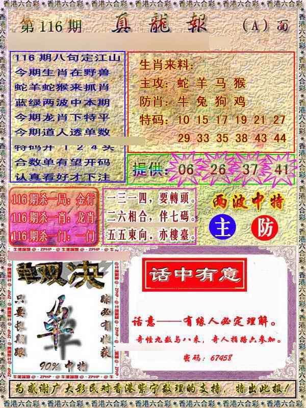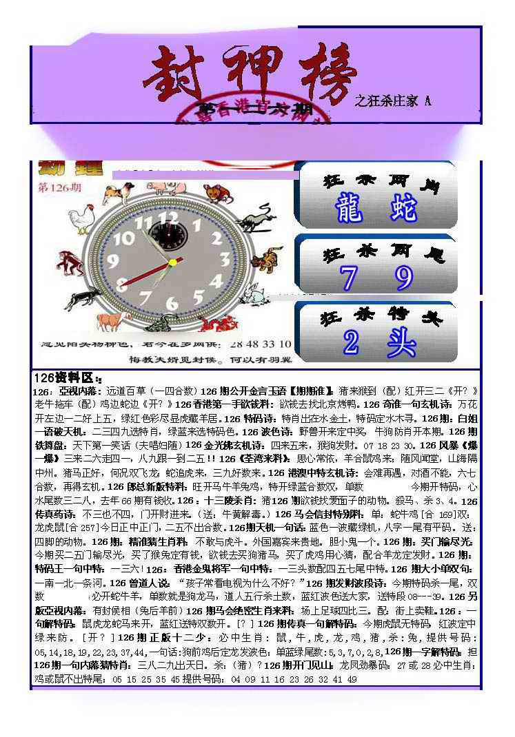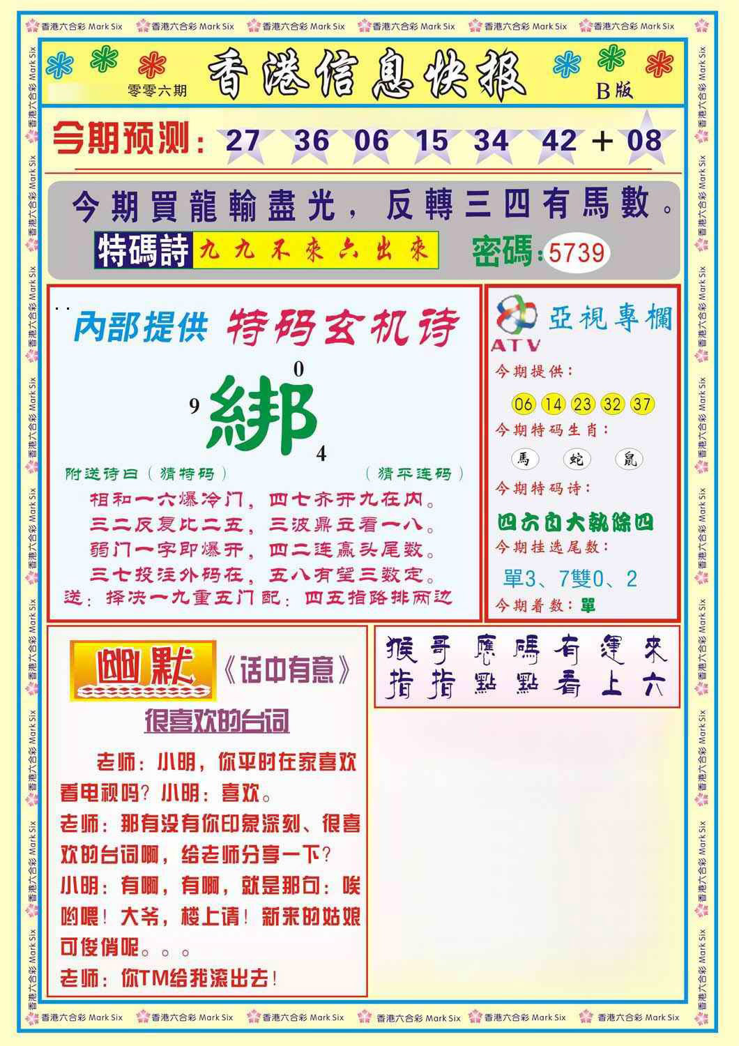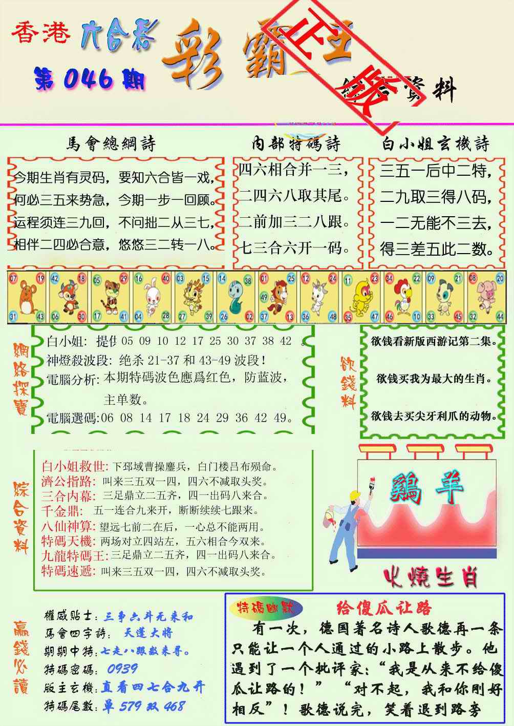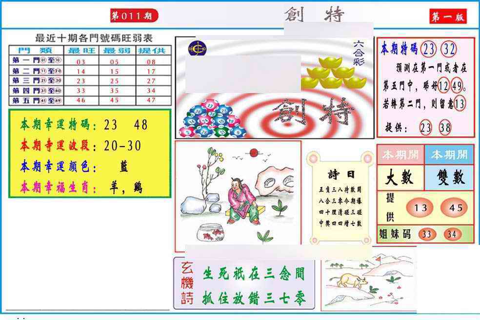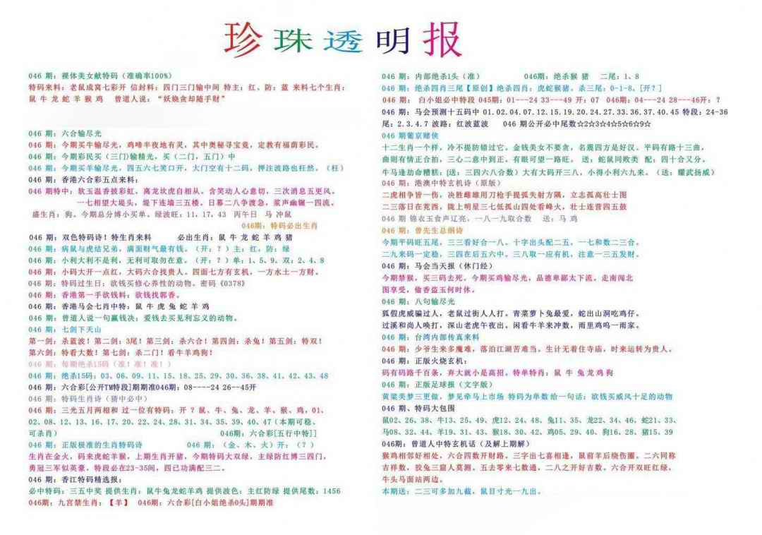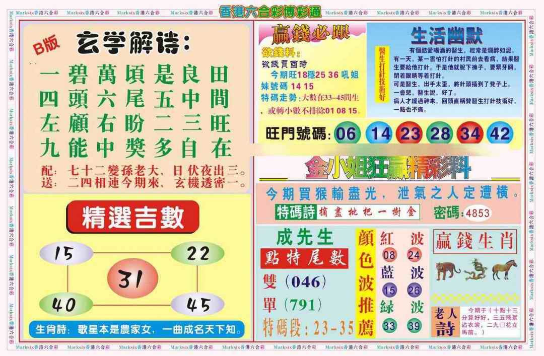 063 六合禅机A 064 六合禅机B 069 特 新 报A 070 特 新 报B