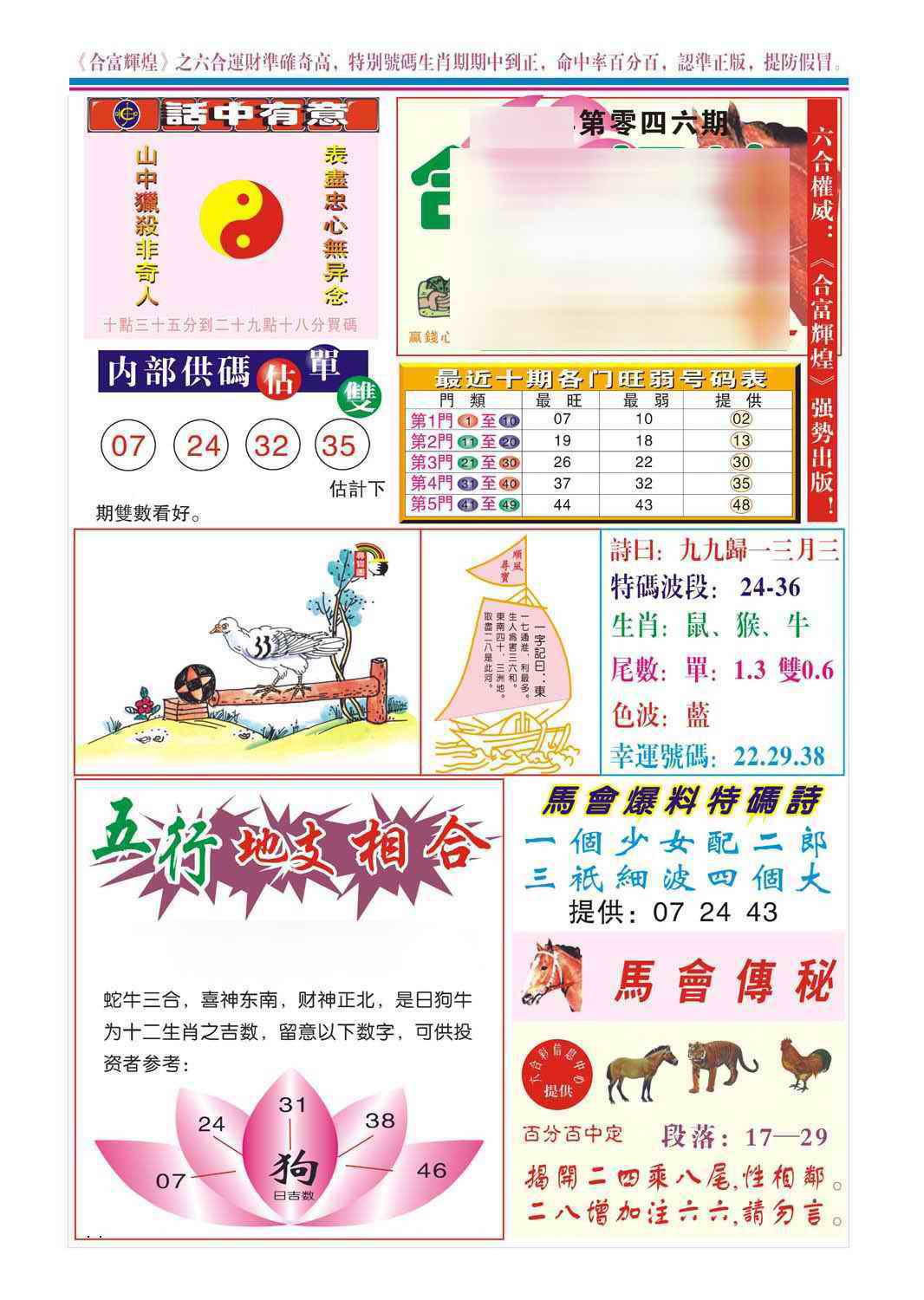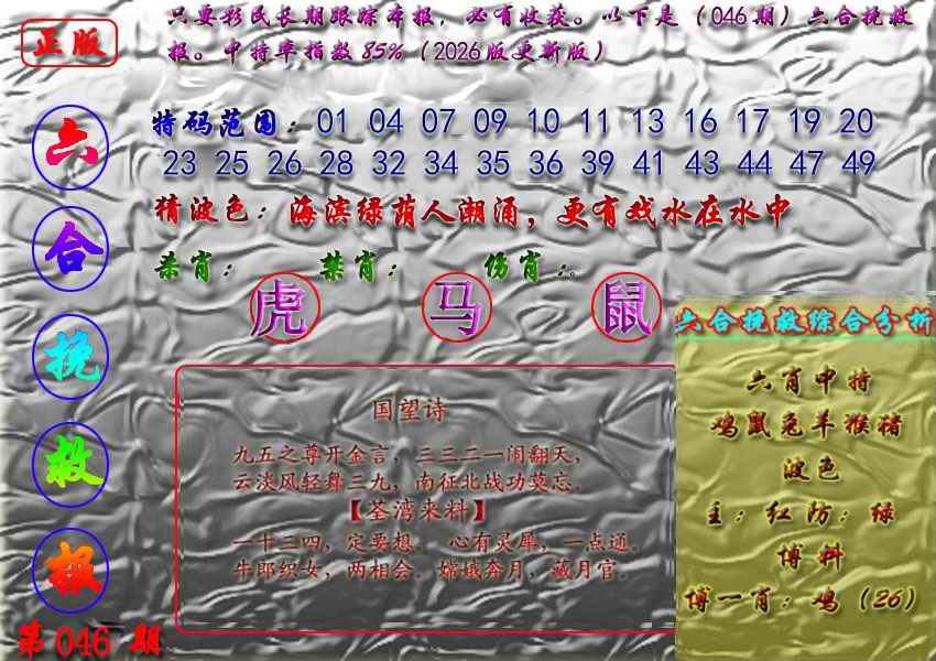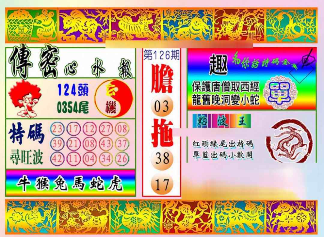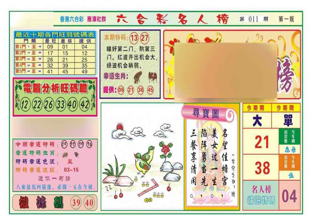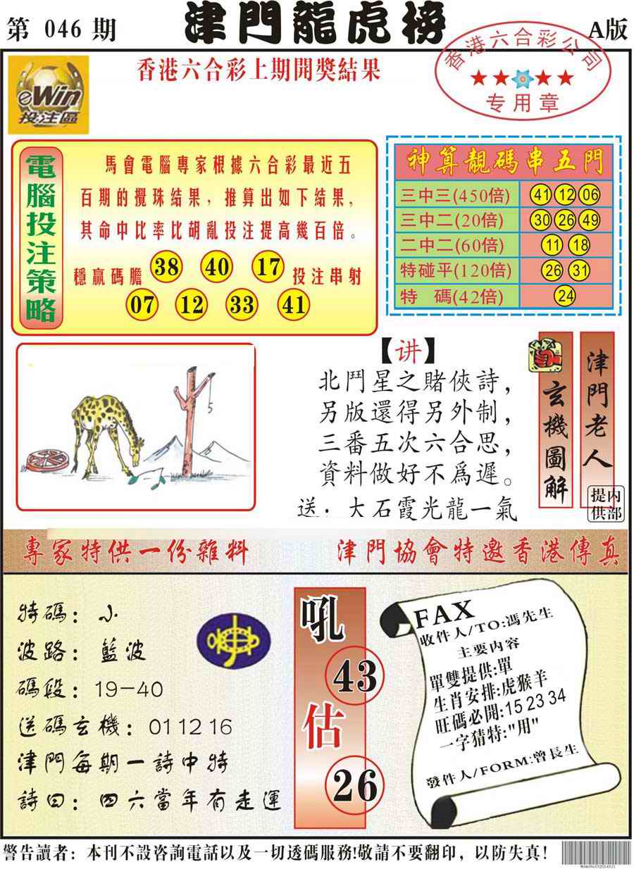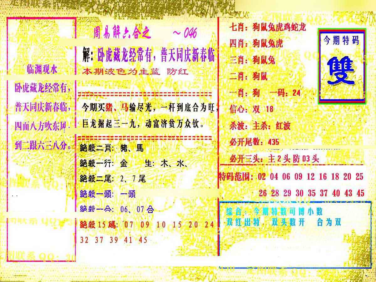 063 六合禅机A 064 六合禅机B 069 特 新 报A 070 特 新 报B