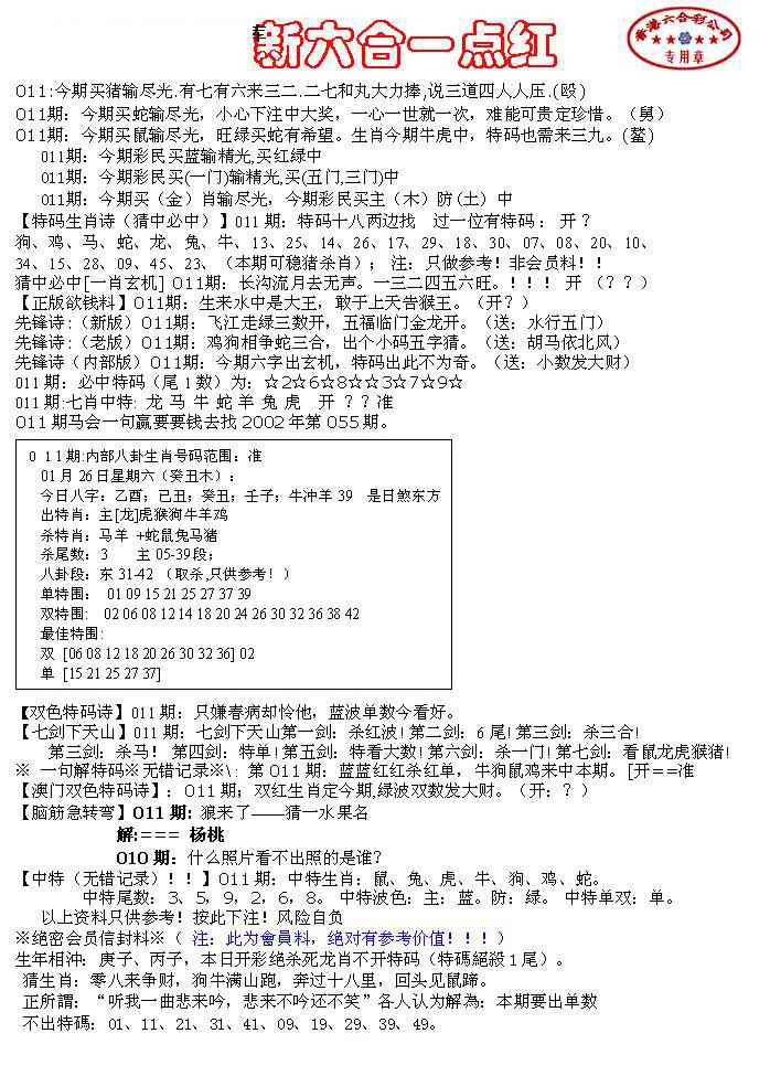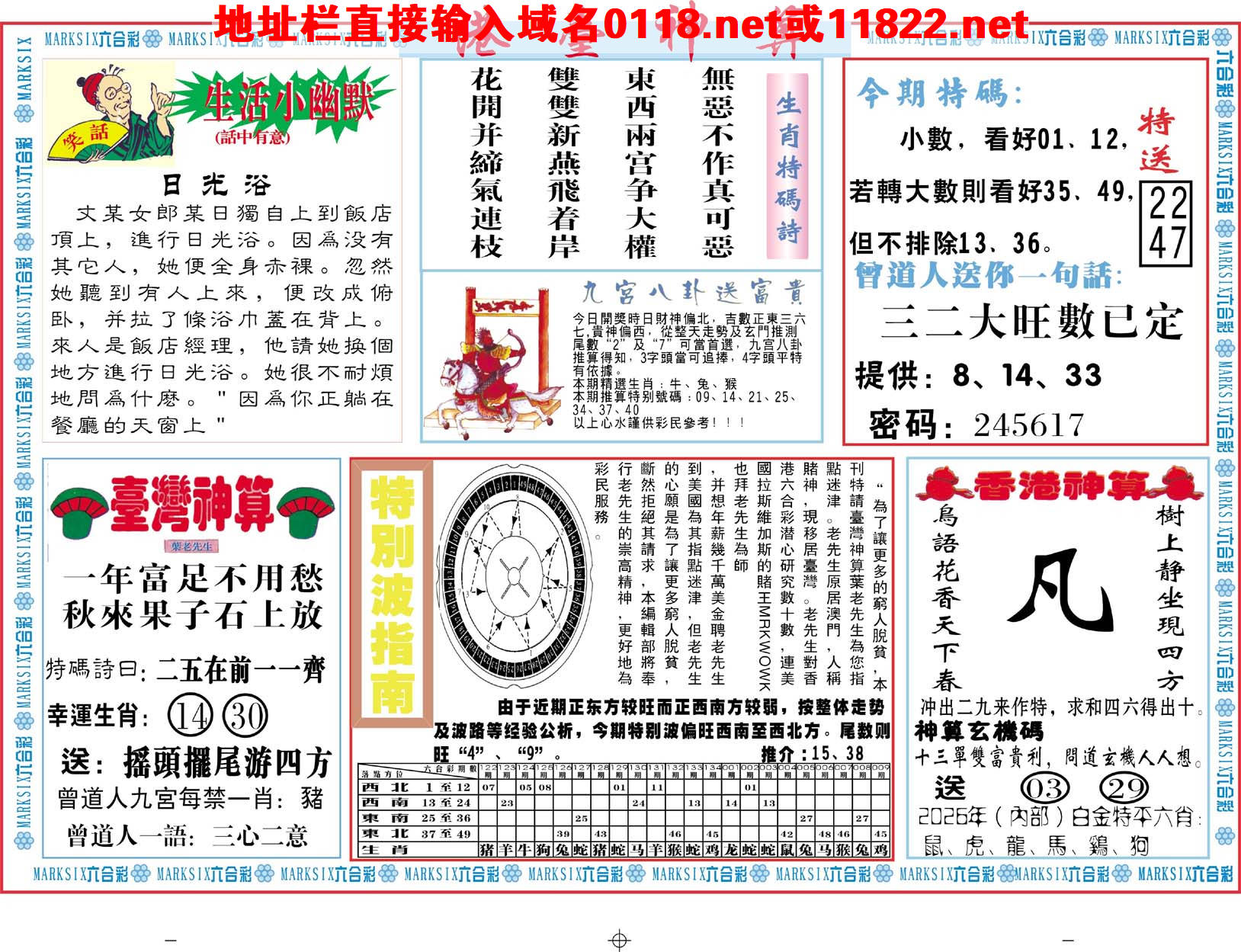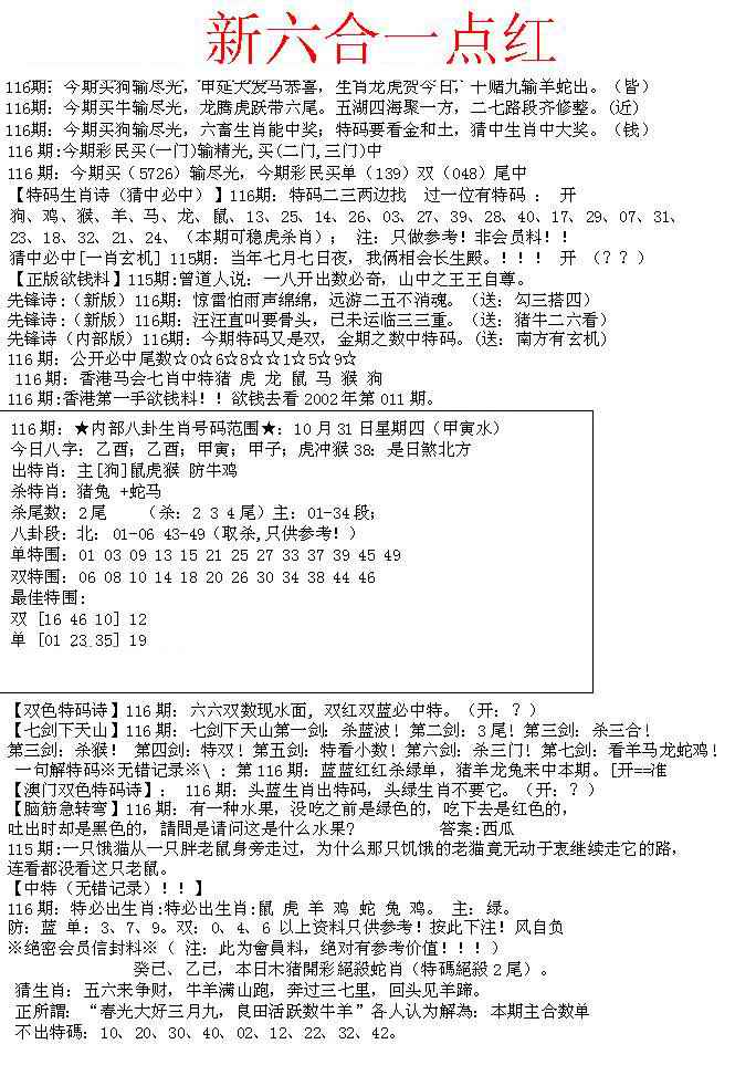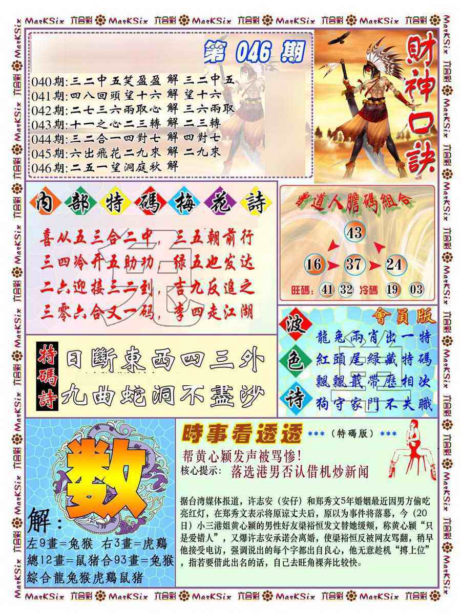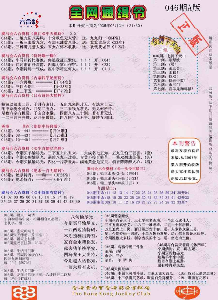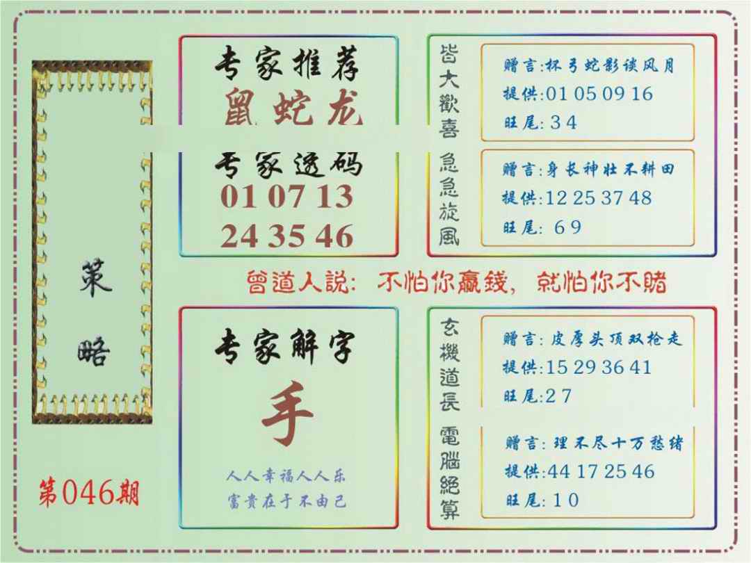 063 六合禅机A 064 六合禅机B 069 特 新 报A 070 特 新 报B