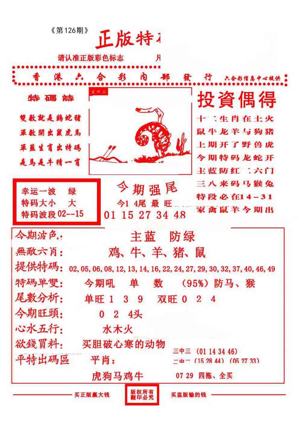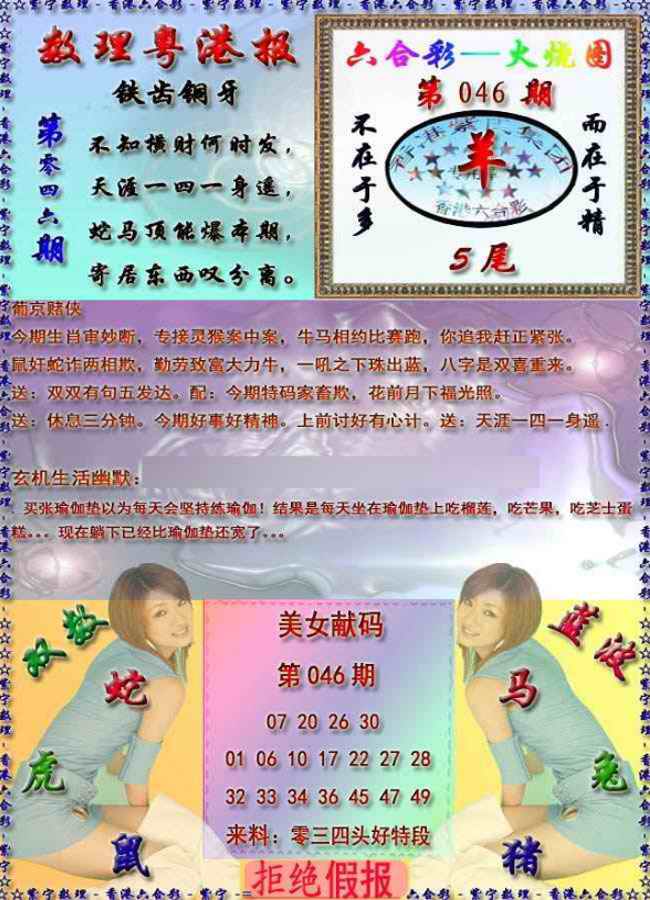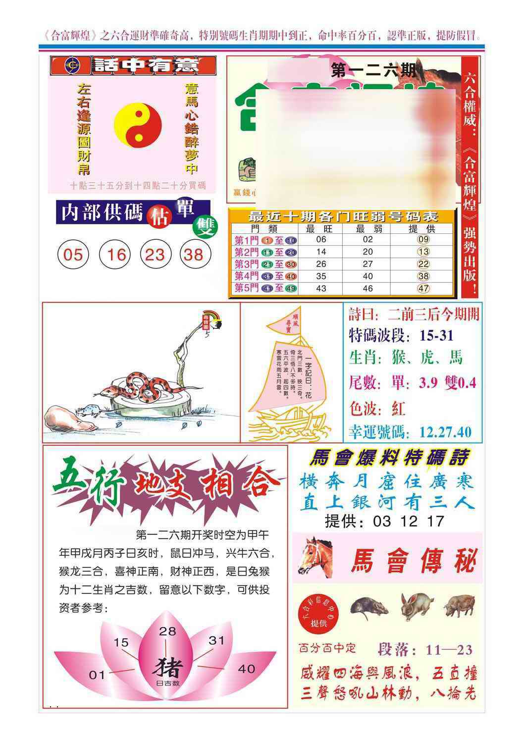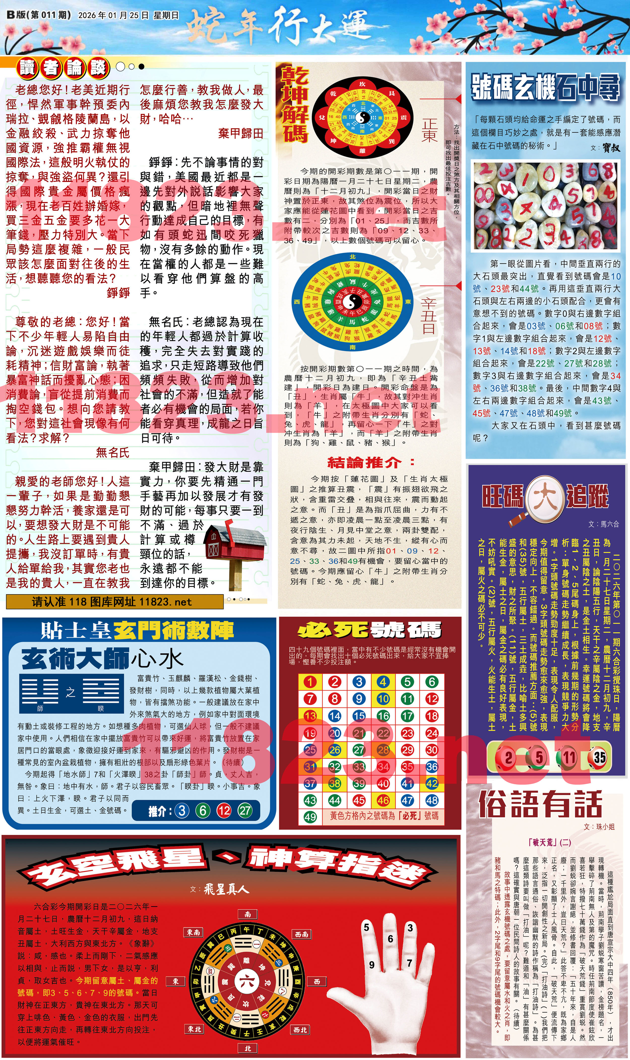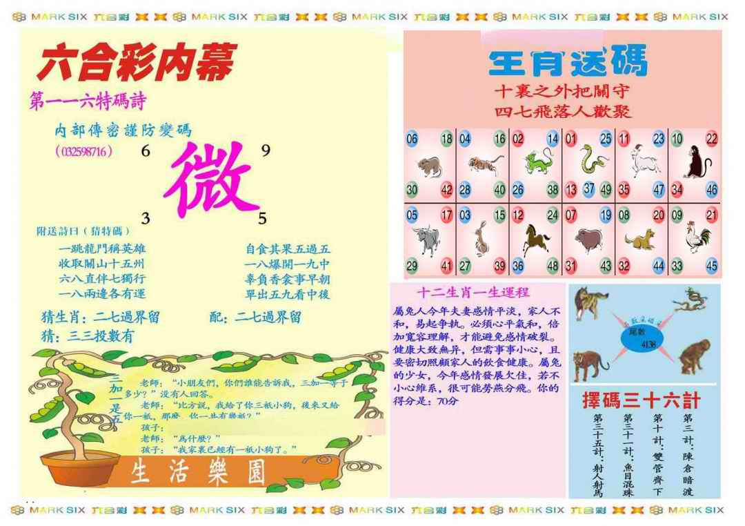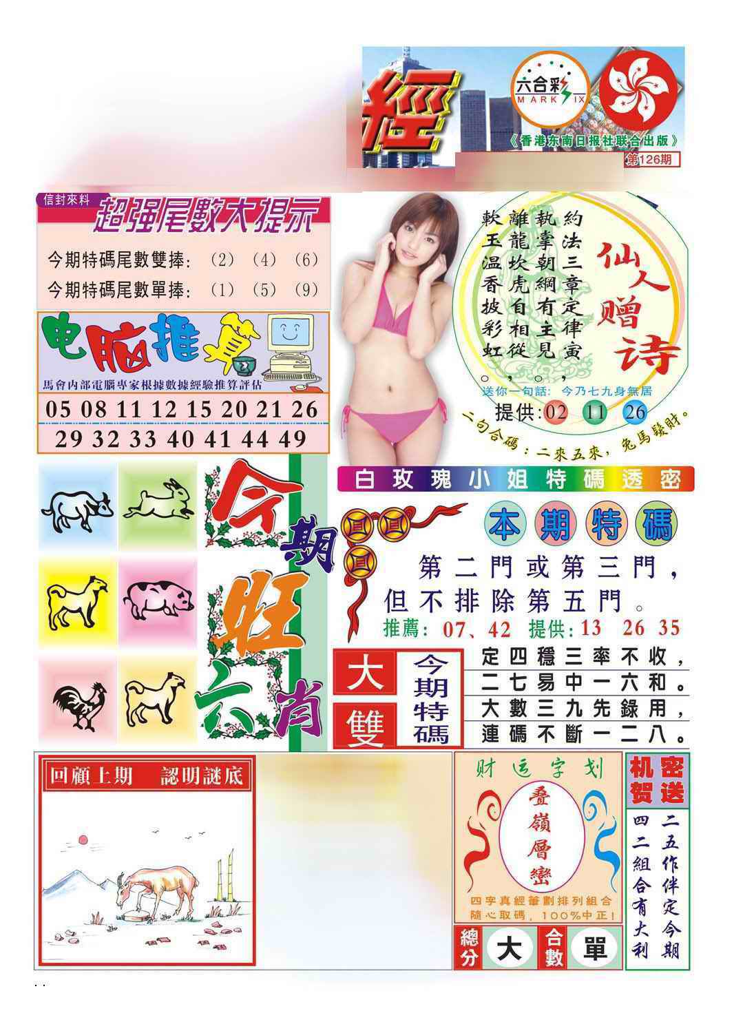 063 六合禅机A 064 六合禅机B 069 特 新 报A 070 特 新 报B