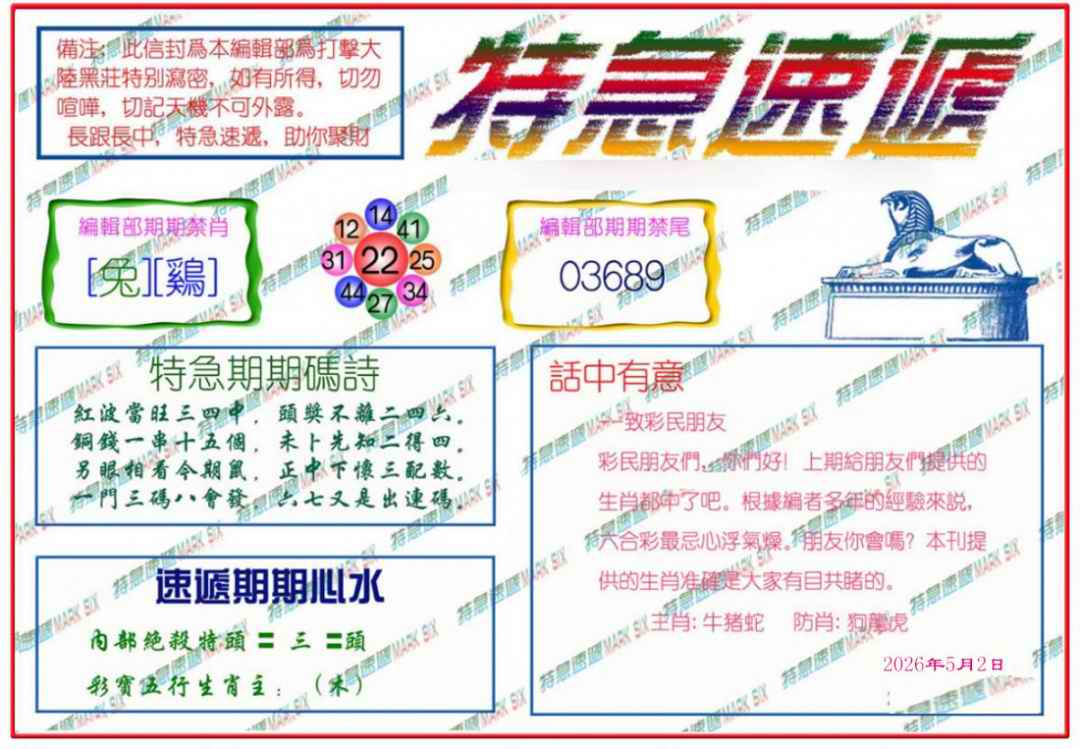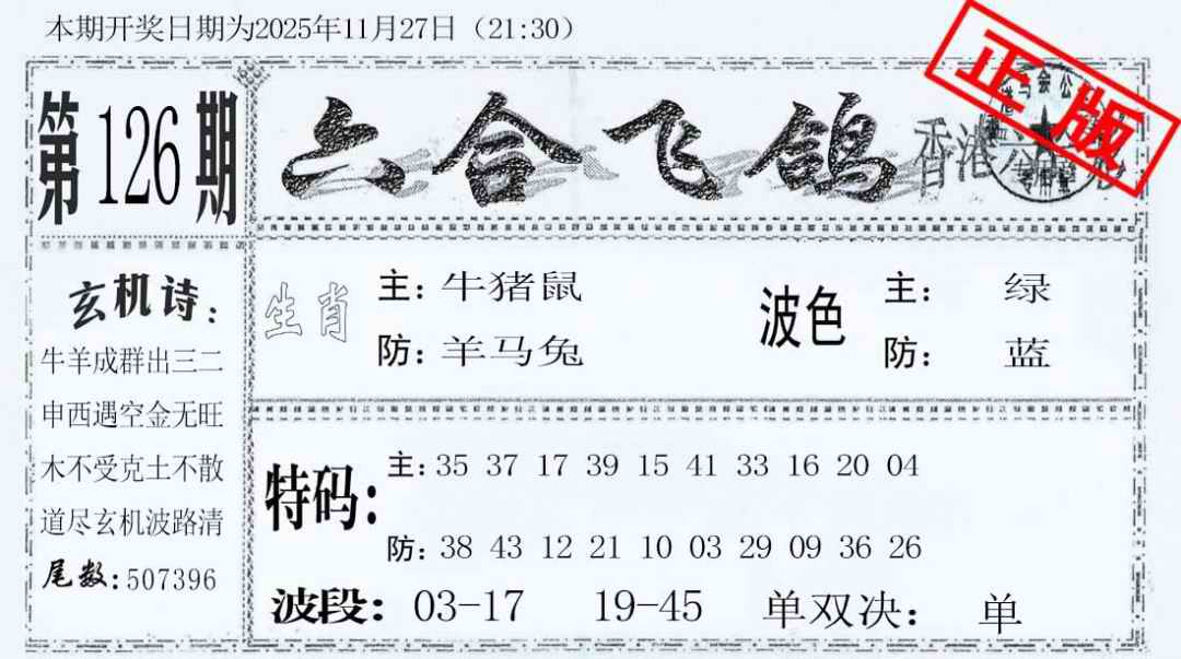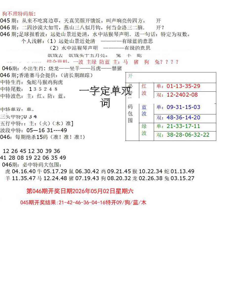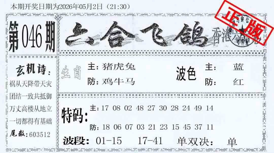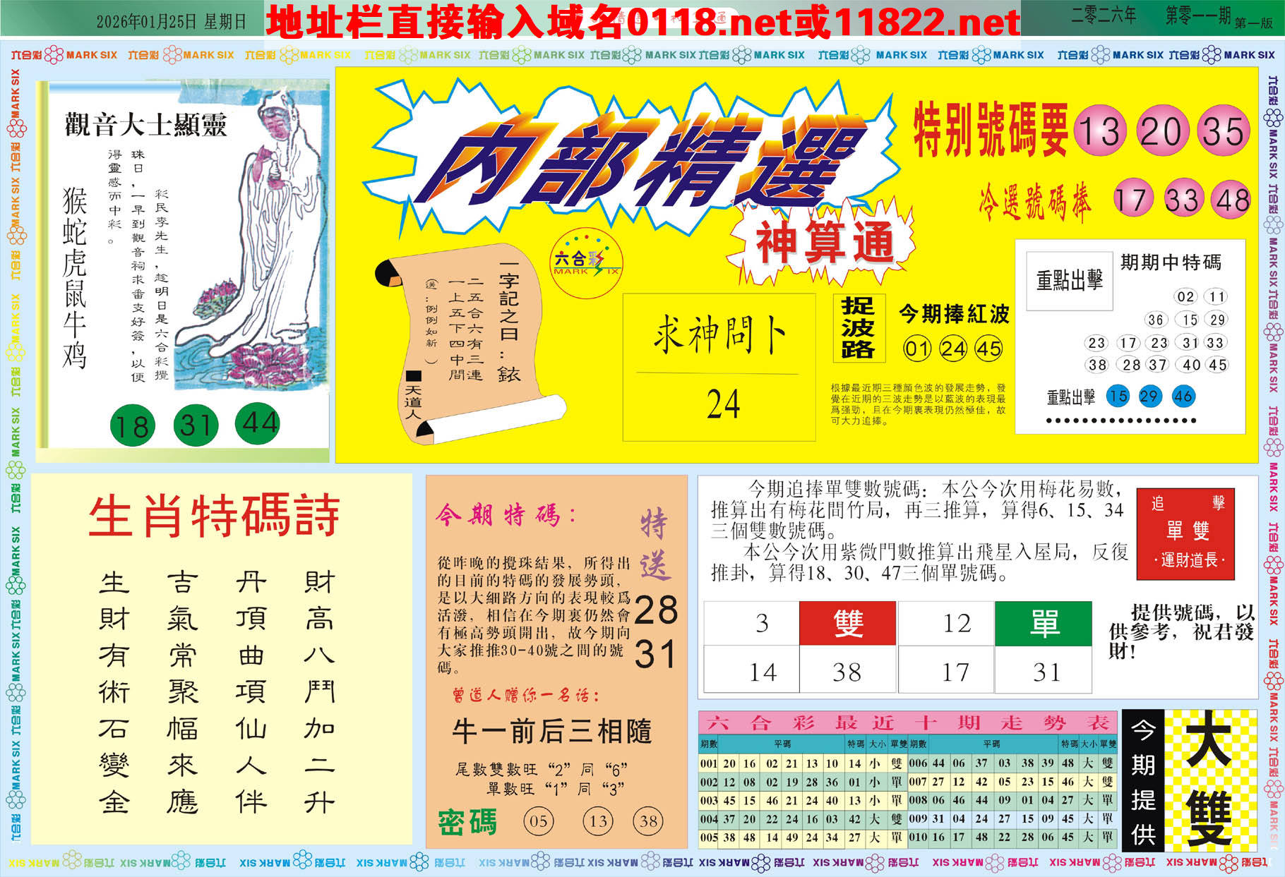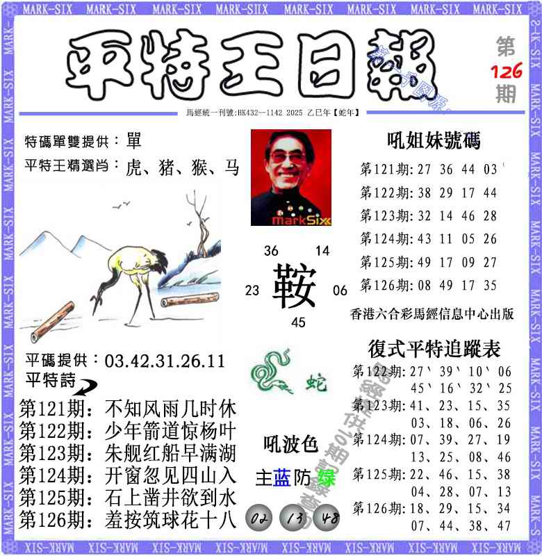 063 六合禅机A 064 六合禅机B 069 特 新 报A 070 特 新 报B