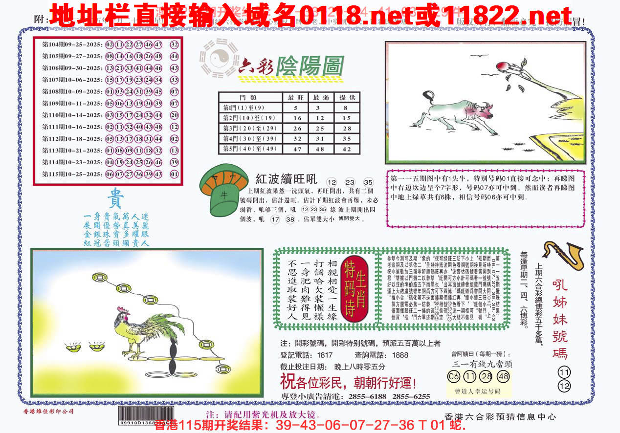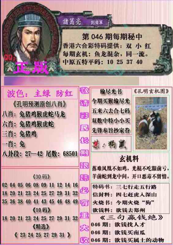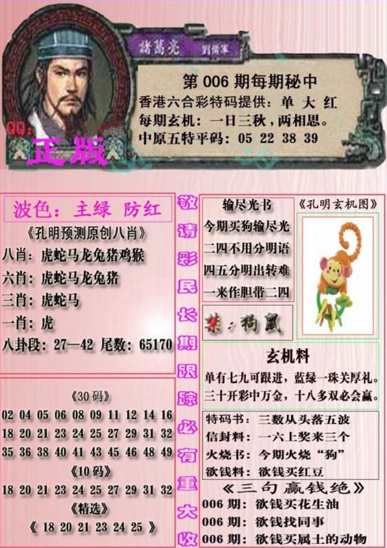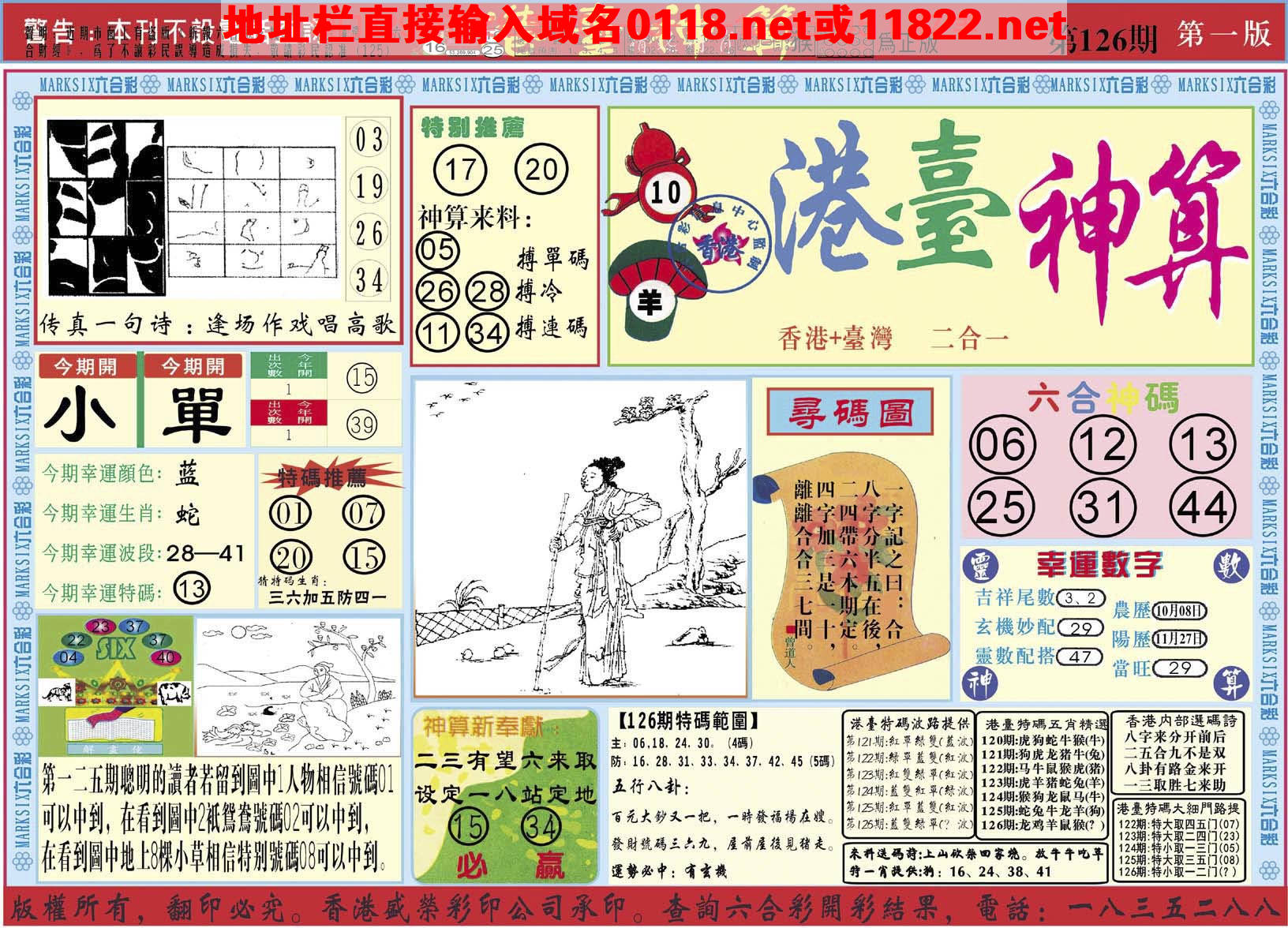065 香港神算 066 澳门三合图 067 台湾神算通 068 六彩阴阳图