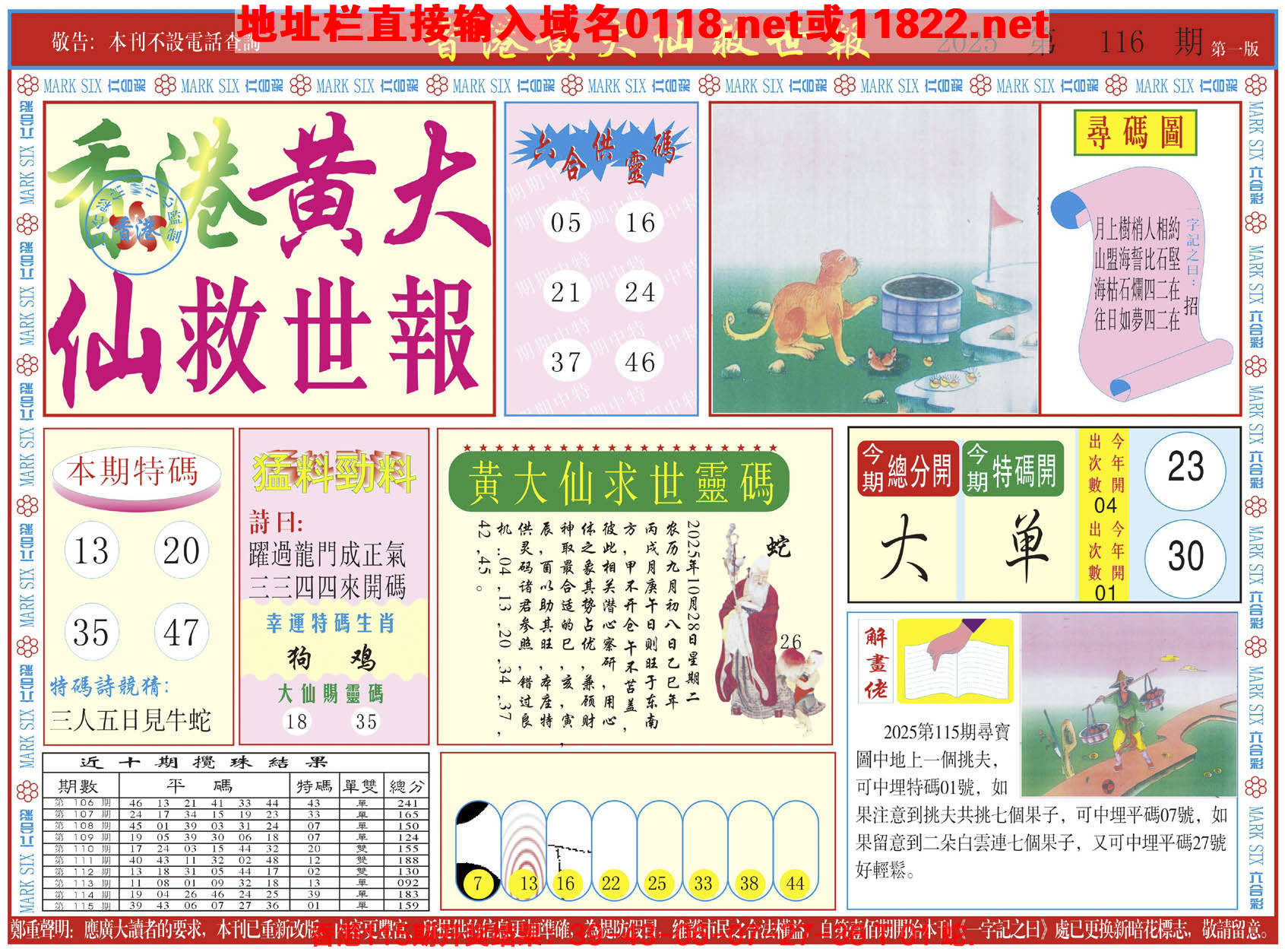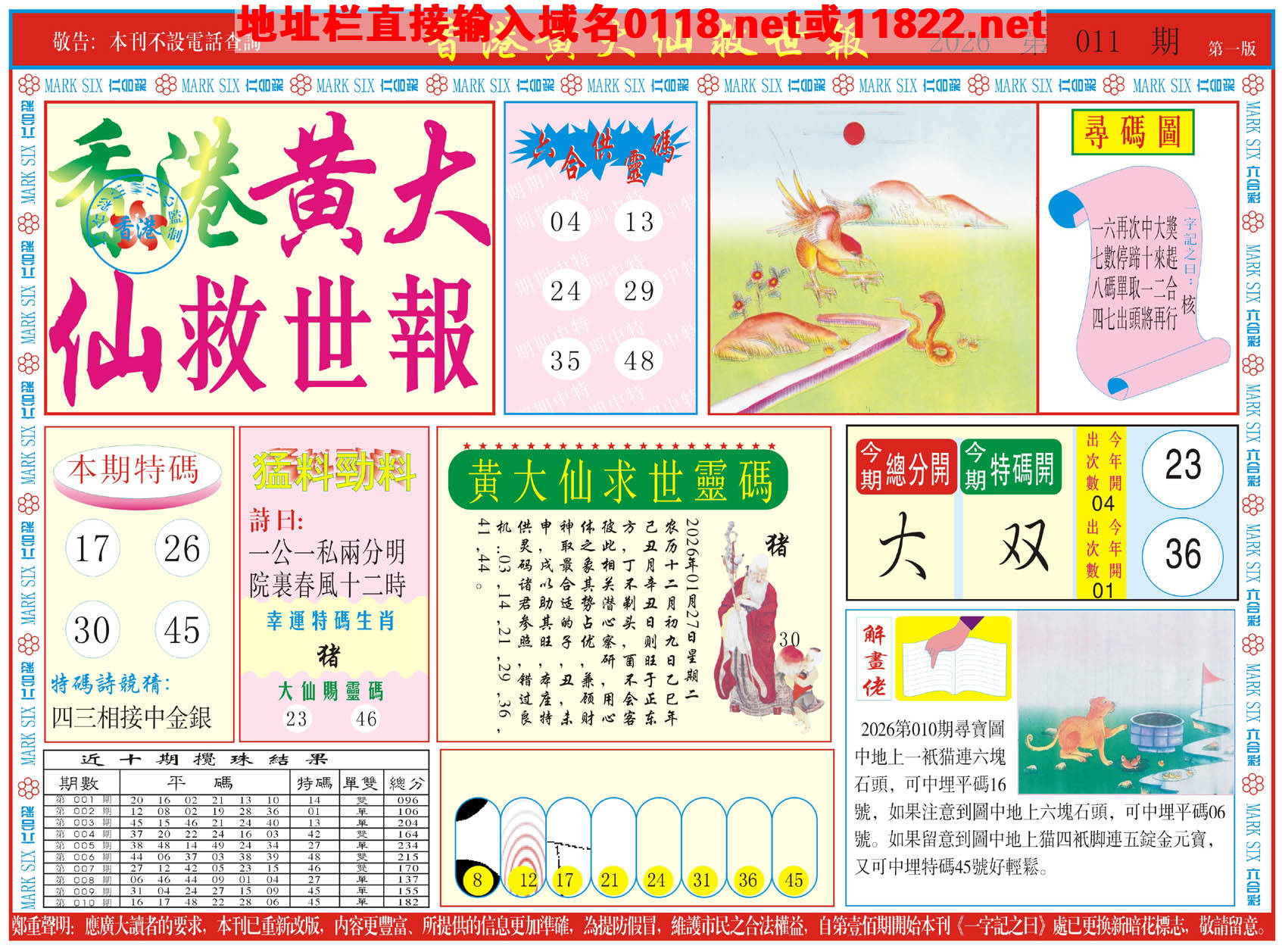 019 黄大仙救世报A 020 黄大仙救世报B 021 香港黄大仙报A 022 香港黄大仙报B