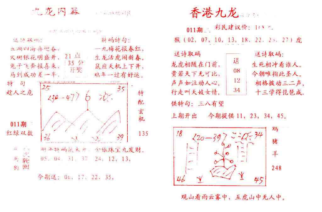 1532 正宗金牌报 1533 新喜报 1534 九龙内幕A 1535 九龙内幕B