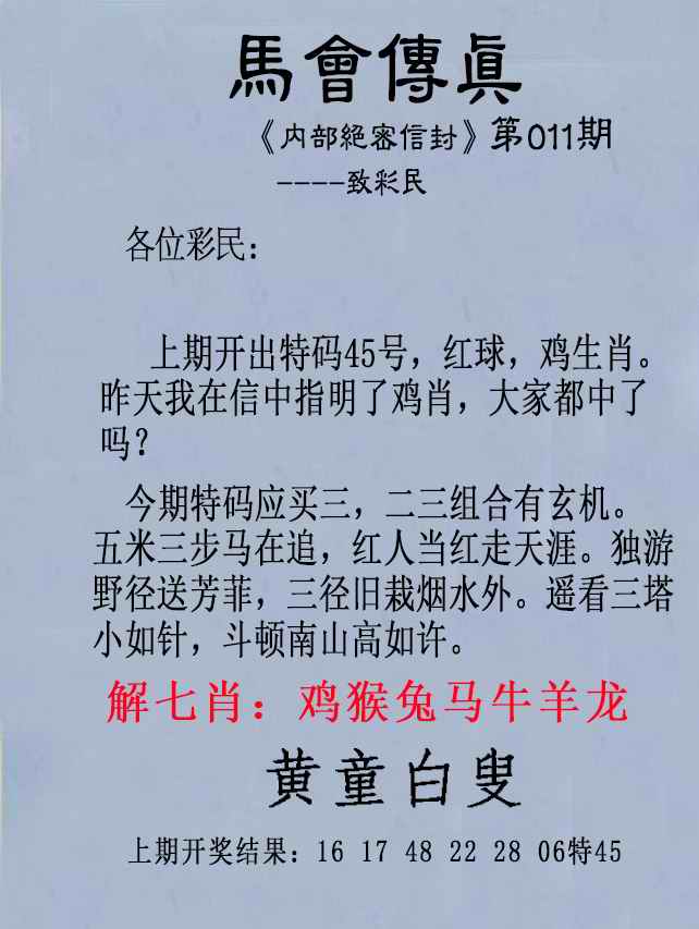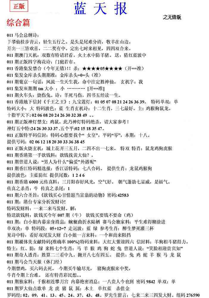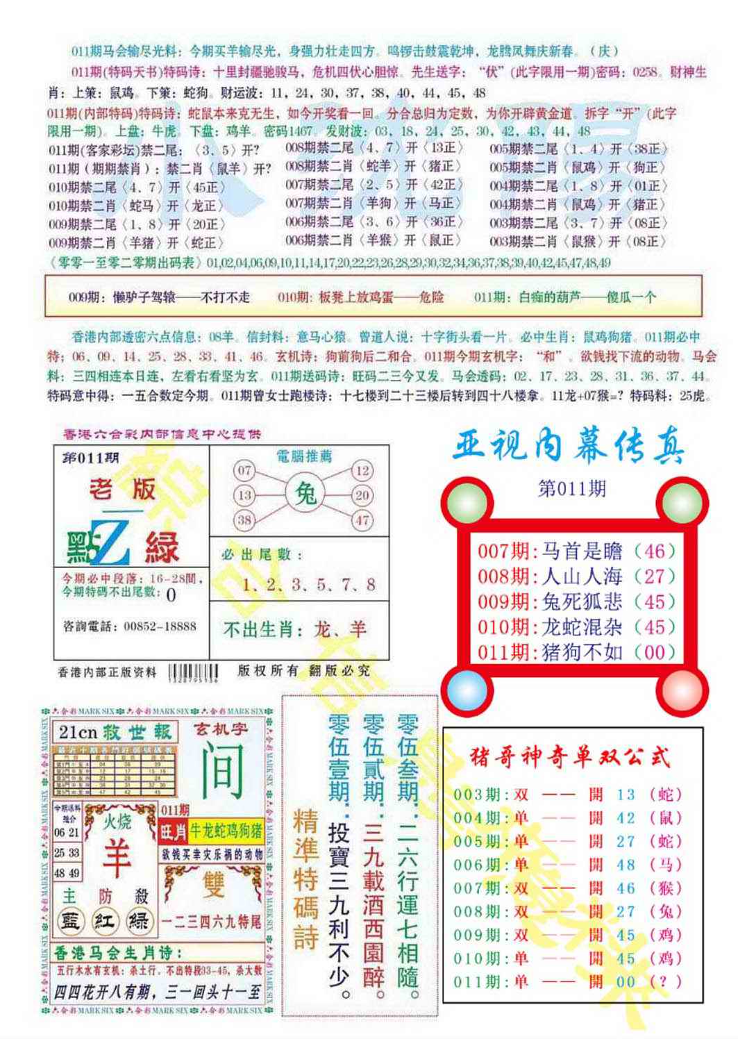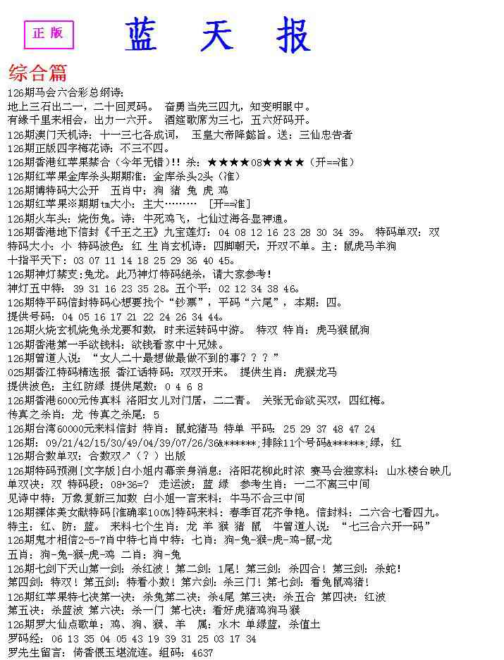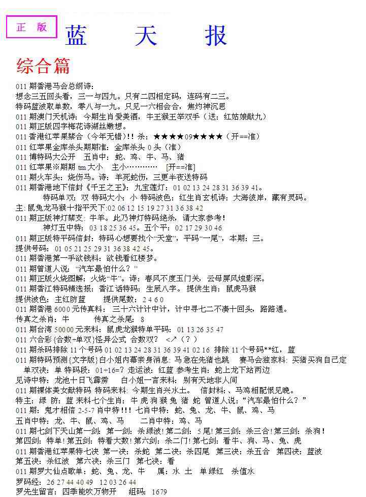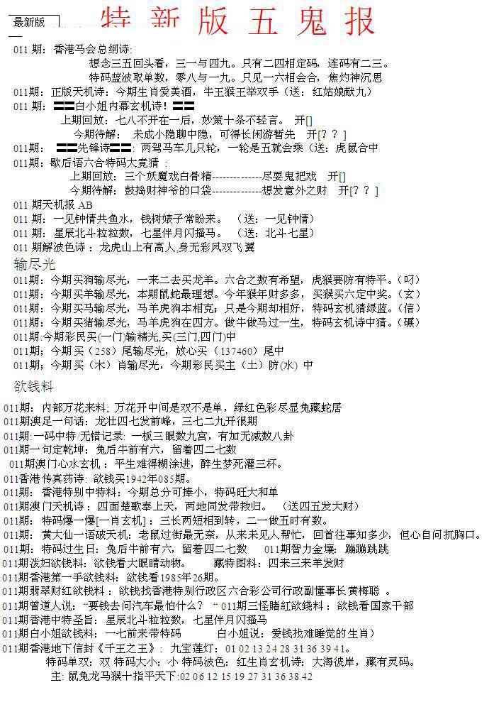 1581 精准传真报 1582 新天线宝宝内幕报 1583 当期狗仔版 1585 白姐泄密