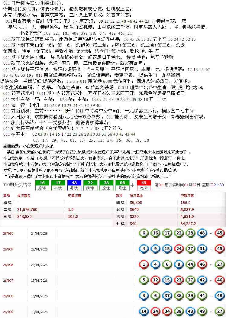 1720 六合神话 1721 台湾凤姐 1722 内部传真 1723 小贴士A