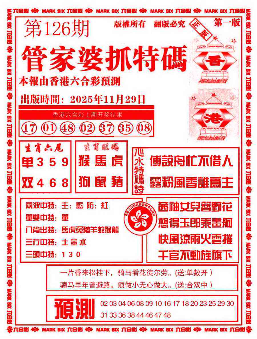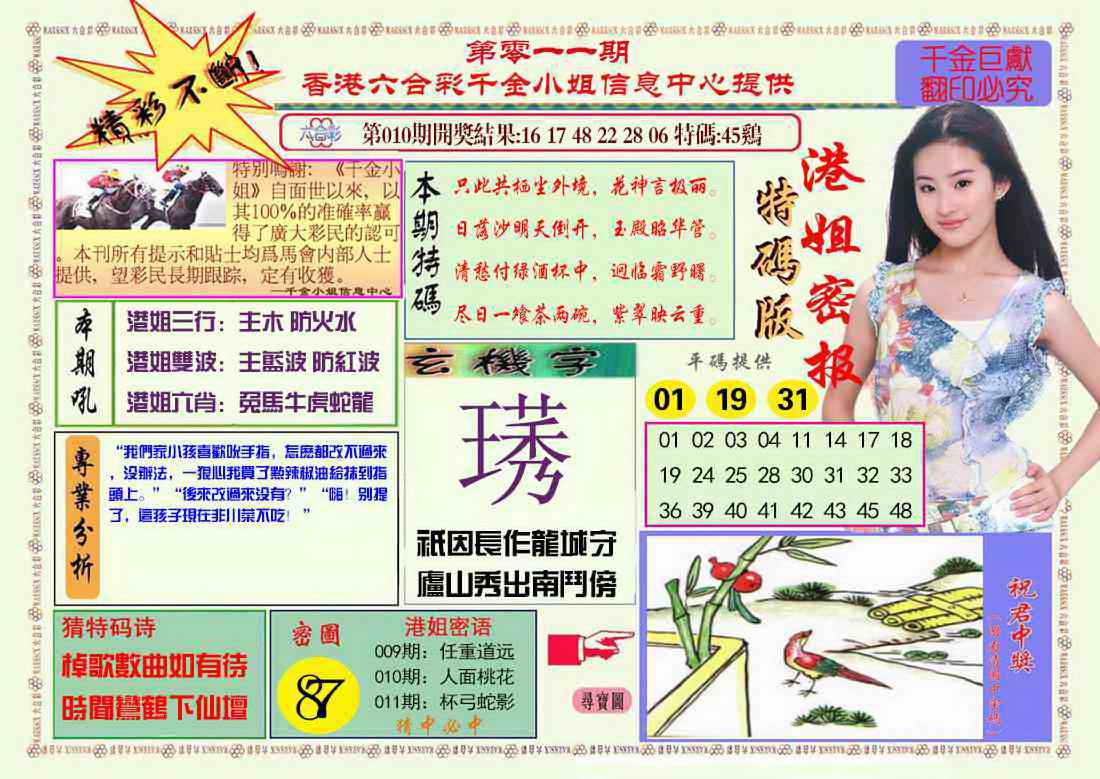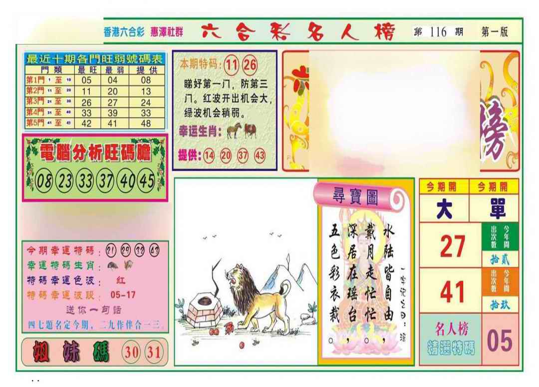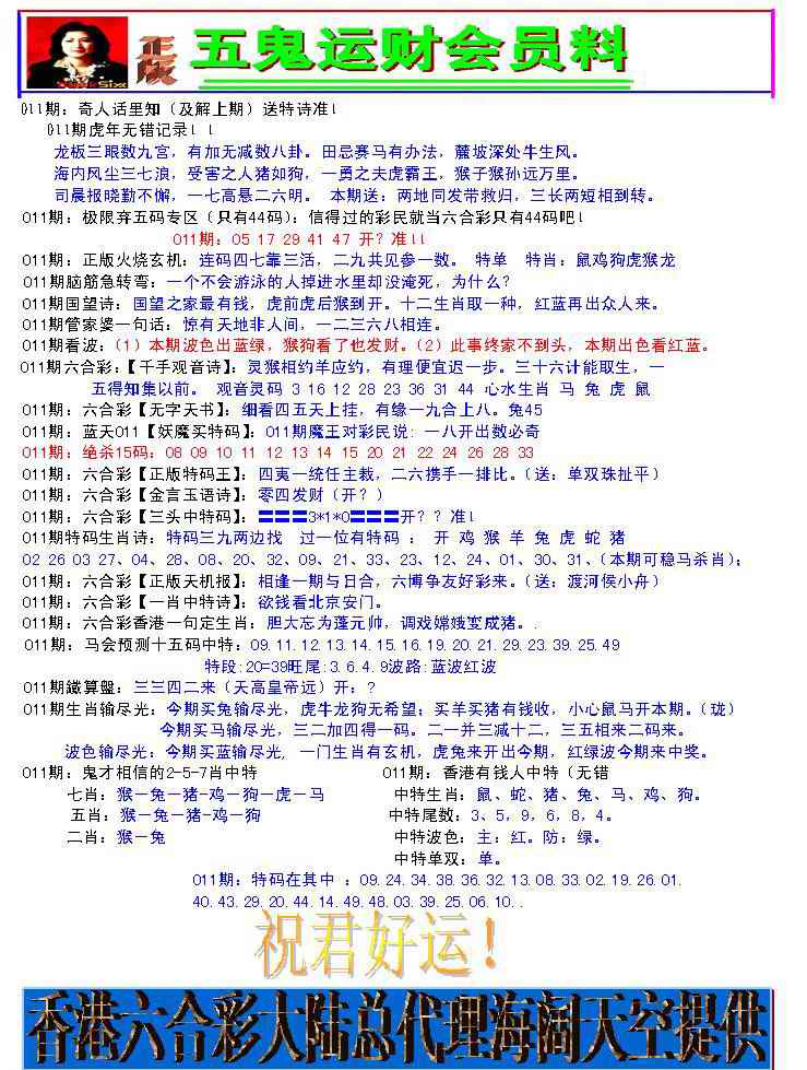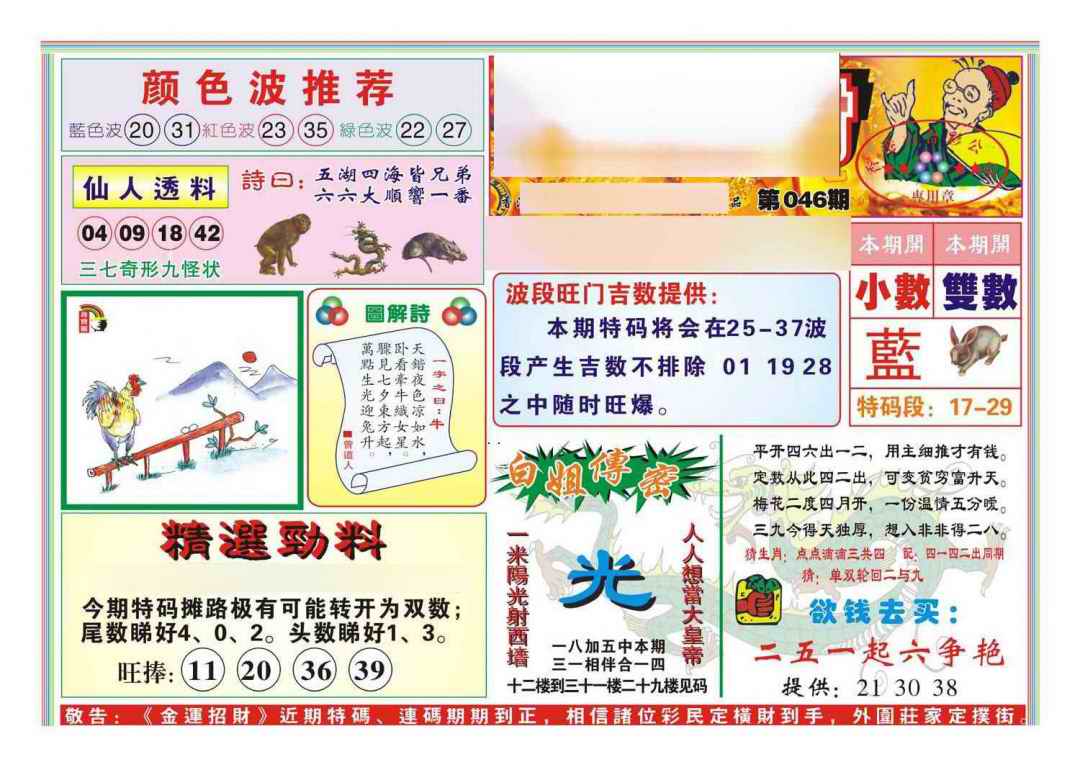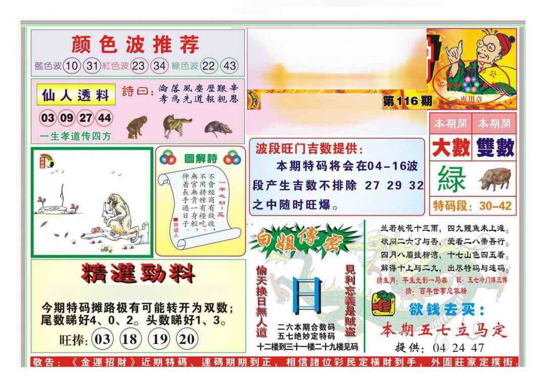1760 大富翁 1761 侨乡狂扫黑庄 1765 马经王牌料 1766 香港马会专刊A