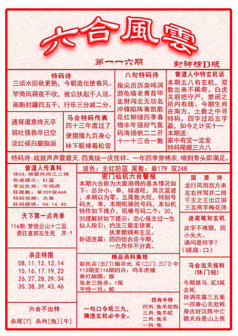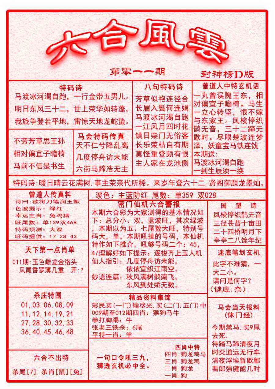 1460 封神榜B 1461 六合风云A 1462 六合风云B 1463 曾道人内幕泄密