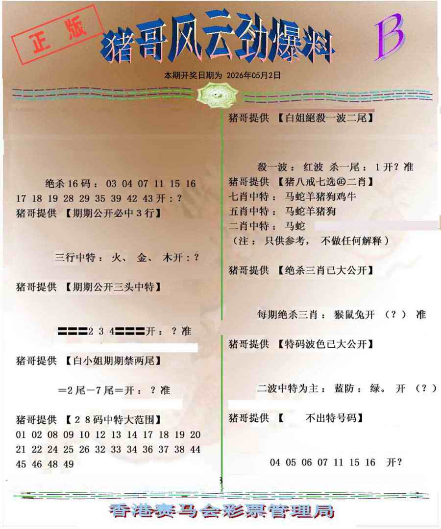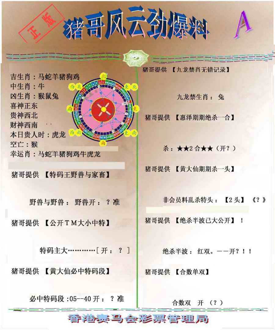829 旺财三码 830 猫王二肖 831 马会快特A 832 马会快特B