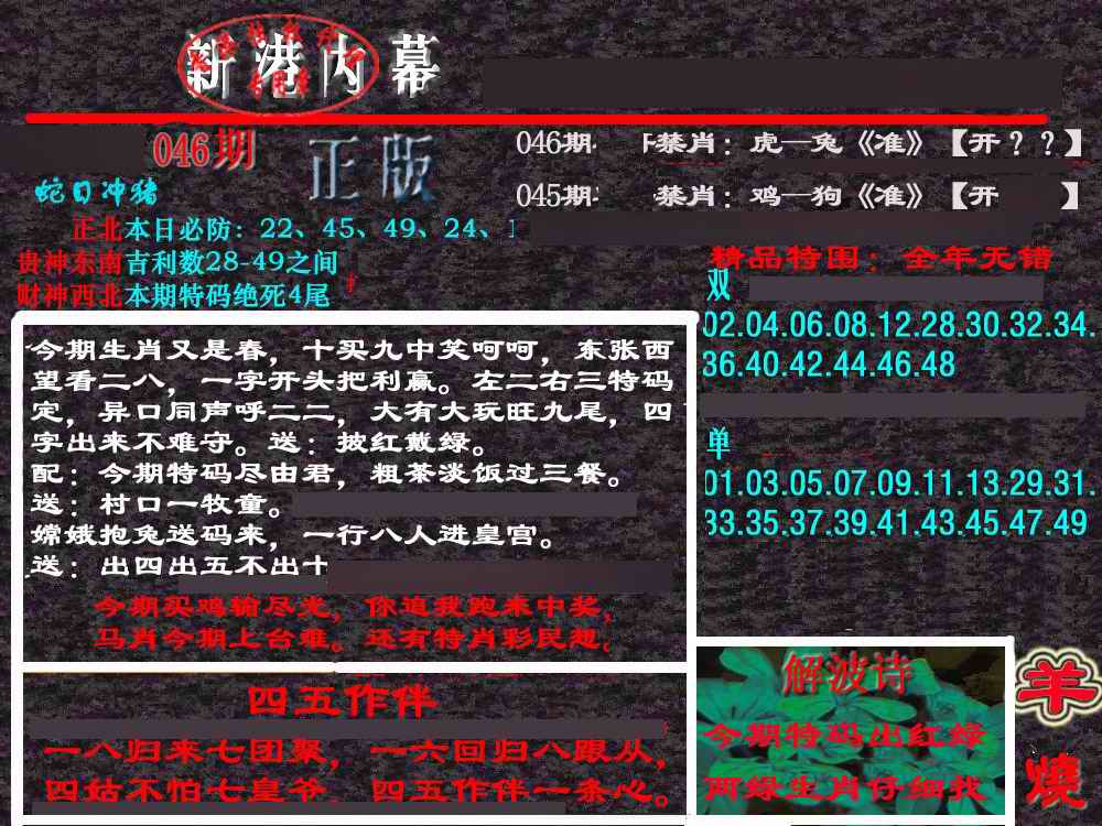 255 白姐绝密精选A 256 白姐绝密精选B 257 新曾道人内幕A 258 新曾道人内幕B