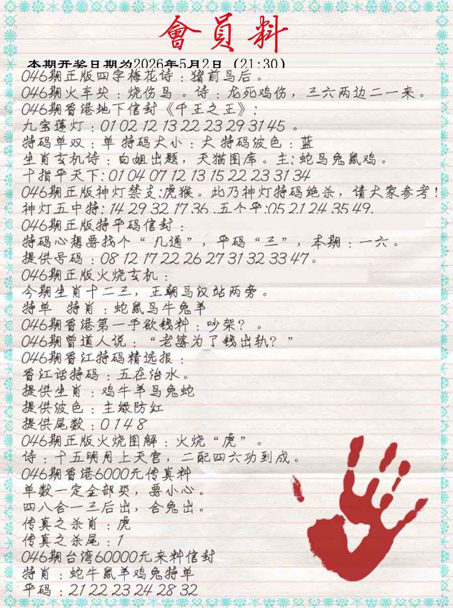 1645 三元神数榜 1646 沙洋县最新传密 1647 香香公主救世报 1648 天天会员报
