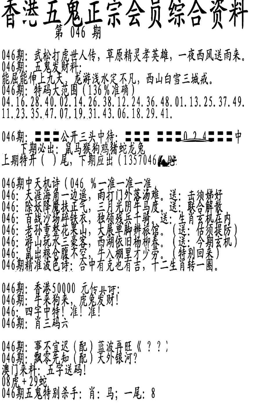 055 玄机新刊A 056 玄机新刊B 057 曾道人玄机A 058 曾道人玄机B