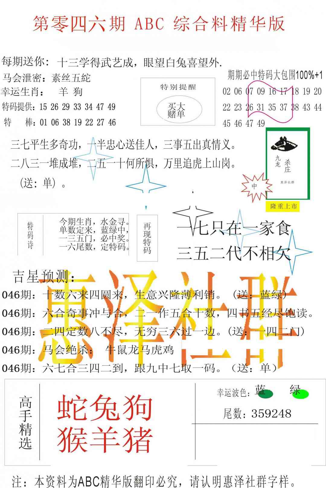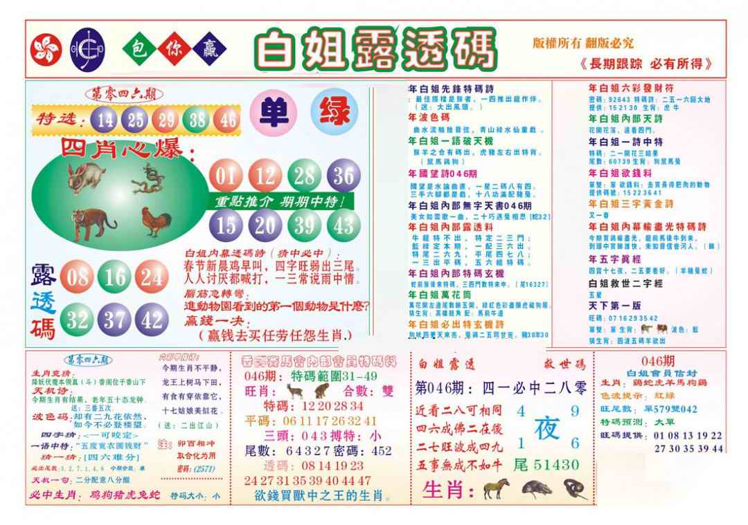 441 六合解霸A 442 六合解霸B 445 白姐特新刊A 446 白姐特新刊B