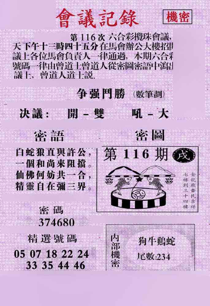 233 内幕玄机加大版A 234 内幕玄机加大版B 235 六合心经A 236 六合心经B