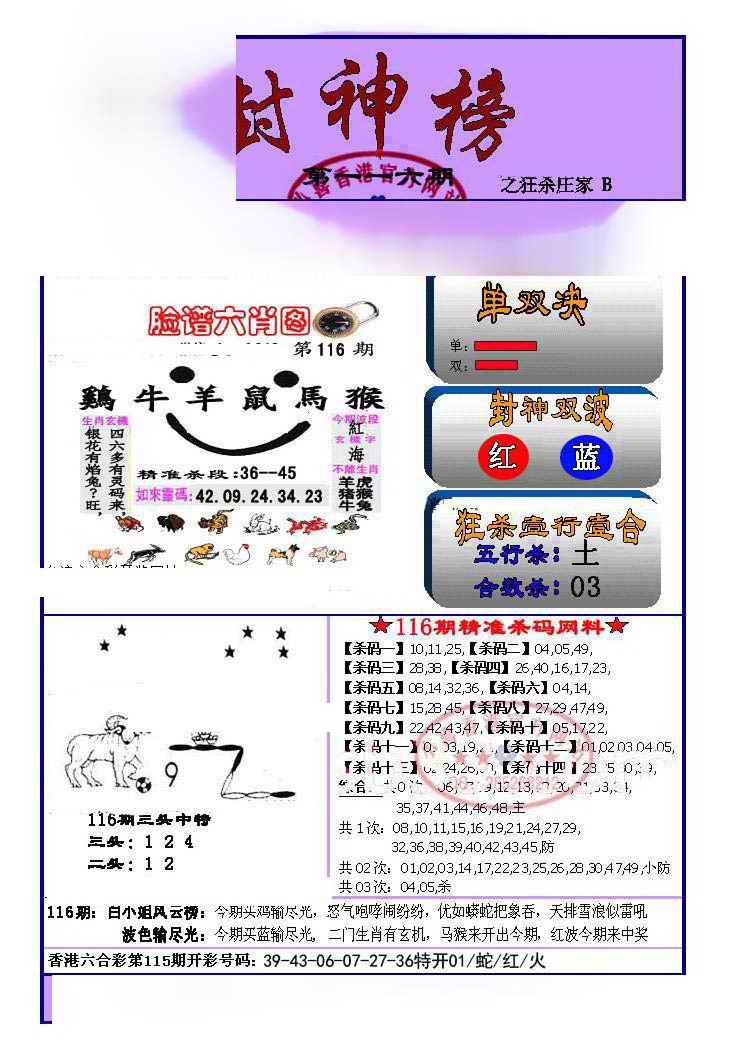 163 六合冠军版A 164 六合冠军版B 203 姜子牙神算A 204 姜子牙神算B