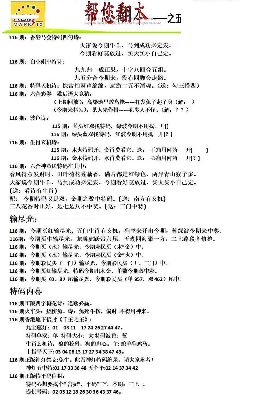 361 大财经发财图 577 金旺旺信箱 553 九方大师 156 内部透码(信封)
