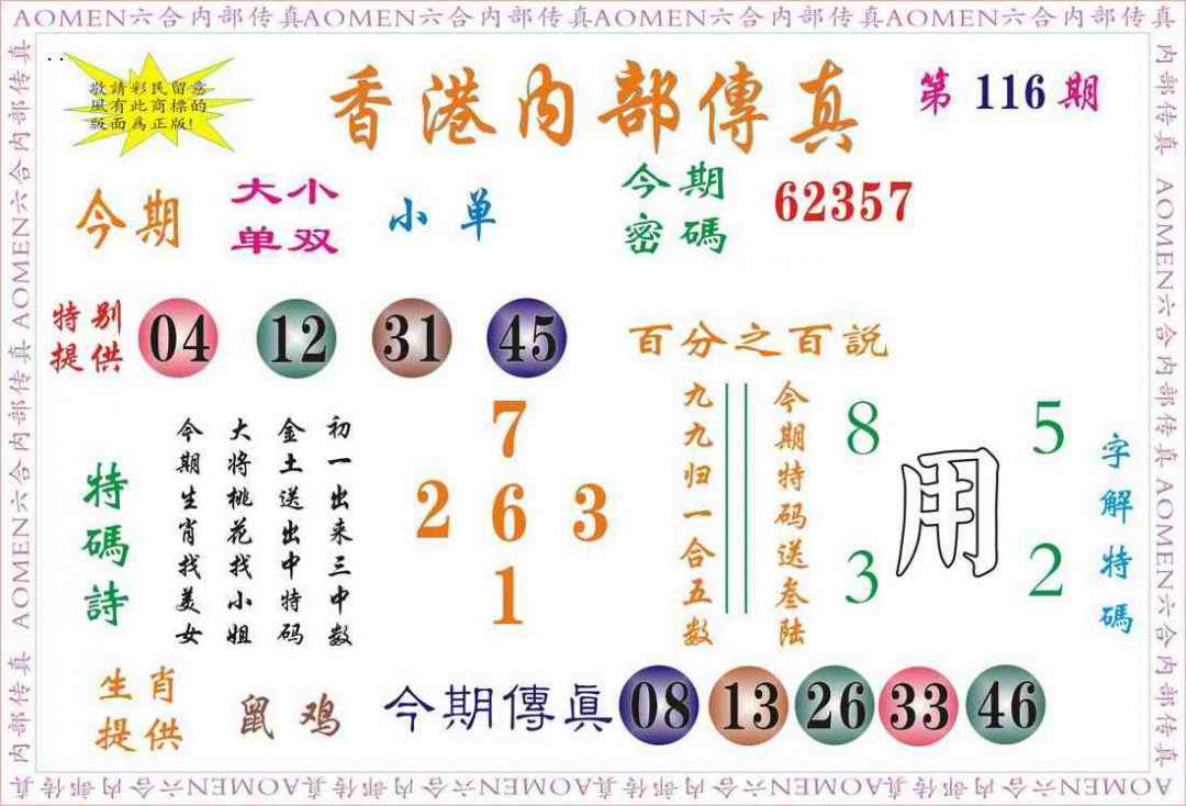 833 白姐透特 834 六合解霸 835 六合易经A 836 六合易经B