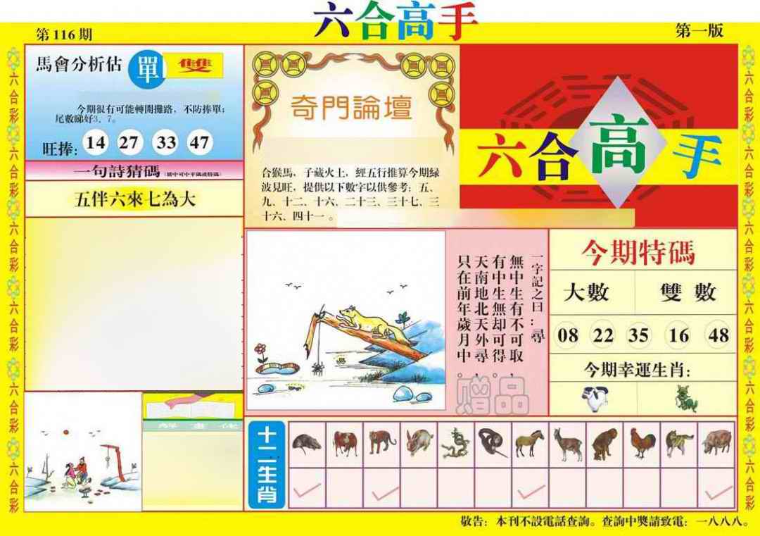 1448 挂牌天书 1449 财神码报 1450 赛马会高级波色图 1451 赛马会高级八肖图