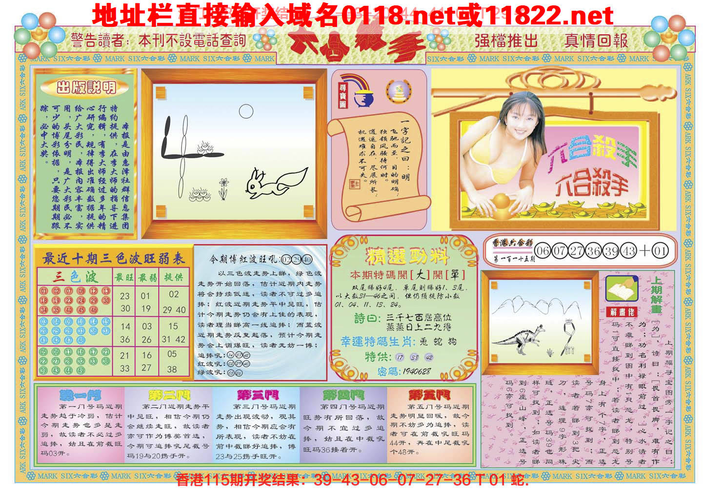 1659 一点红 1660 马经平特图 1661 杀杀杀A 1662 杀杀杀B